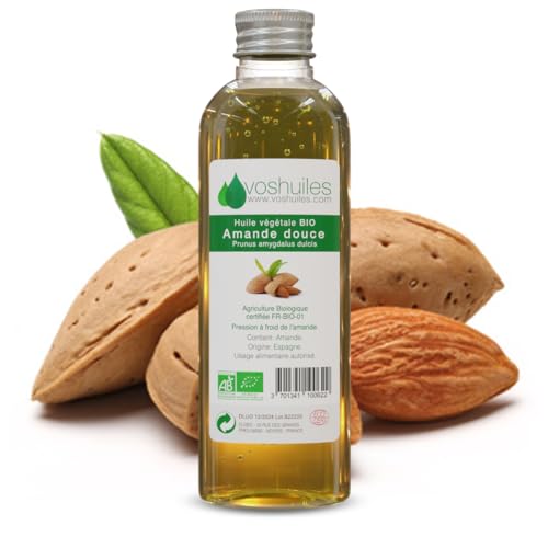 VOSHUILES - Huile Végétale BIO d'Amande Douce - 50ml - Soin Naturel pour Peau et Cheveux - Hydratation et Nourrissement - Qualité Premium - Usage Cosmétique