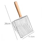 Pelle à litière pour chat, pelle à tamis, pelle à litière pour chat en métal, avec manche en bois, pelle pour litière pour chat plus grande partie des Ti pi ces litière chats