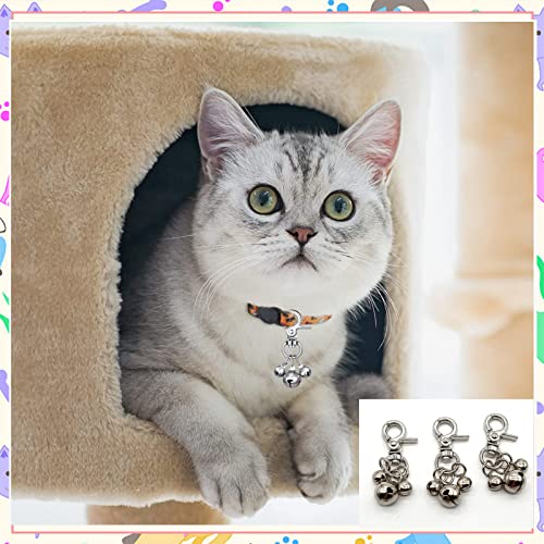 Clochette Chien pour Collier, 5 Pièces en Alliage de Zinc Argenté avec Pendentif Triple Grelot pour Chien et Chat, 1 Barillet en Laiton