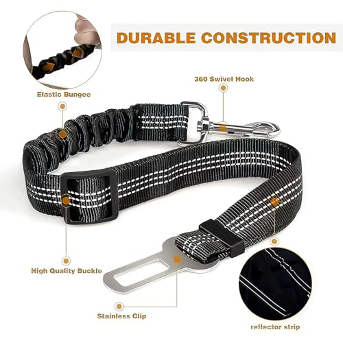 Ceinture Chien Voiture, Harnais pour Chien, Ceinture de sécurité Noir, Laisse pour Voiture avec Absorption de Chocs, Réglable de Securite pour Chats et Chiens