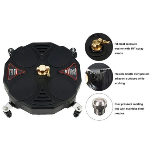 【Material】: High pressure washer surface cleaner is made of high quality stainless steel, high efficiency bristles provide focused, controlled and cleaning of virtually any surface. Flexible bristle jacket protects adjacent surfaces while working.