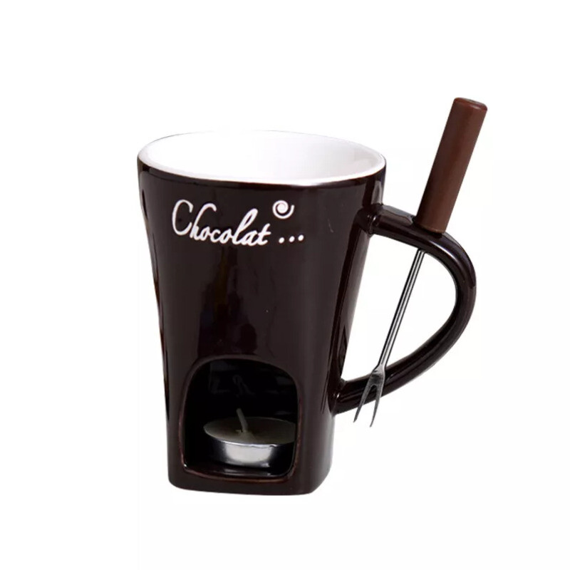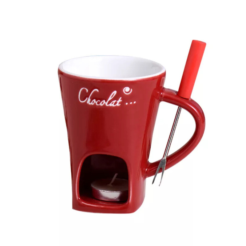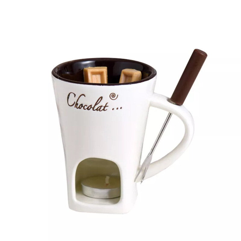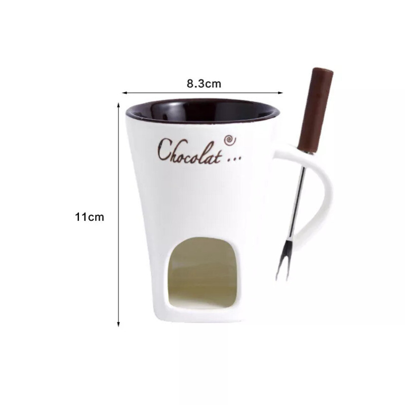 Ceramic Chocolate Fondue Coffee Cup with Fork Melting Mug Chocolate Fondue Mugs