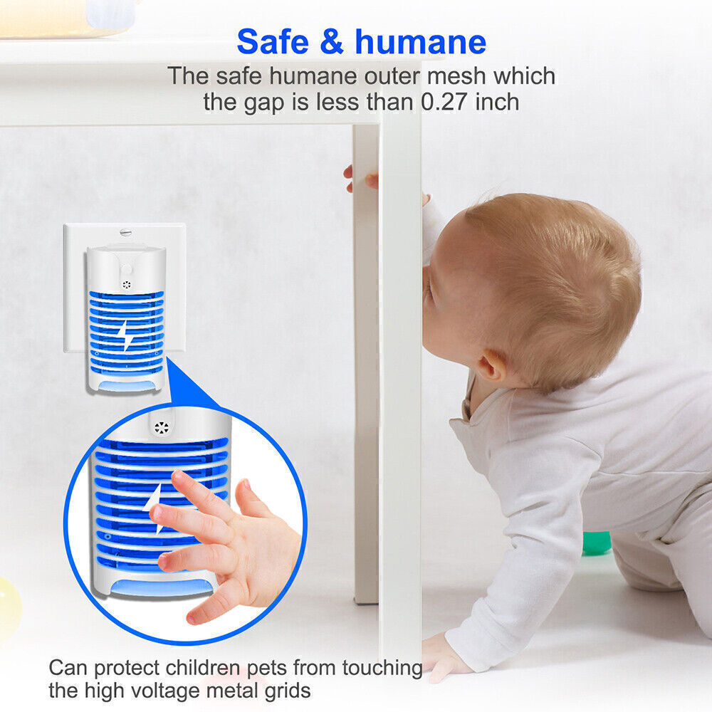 【Quiet Operation】Sleep tight! Just plug into the socket and press the button, this mosquito kill-er will start to work noiselessly. We recommend installing at least one gnat killer in your bedroom.