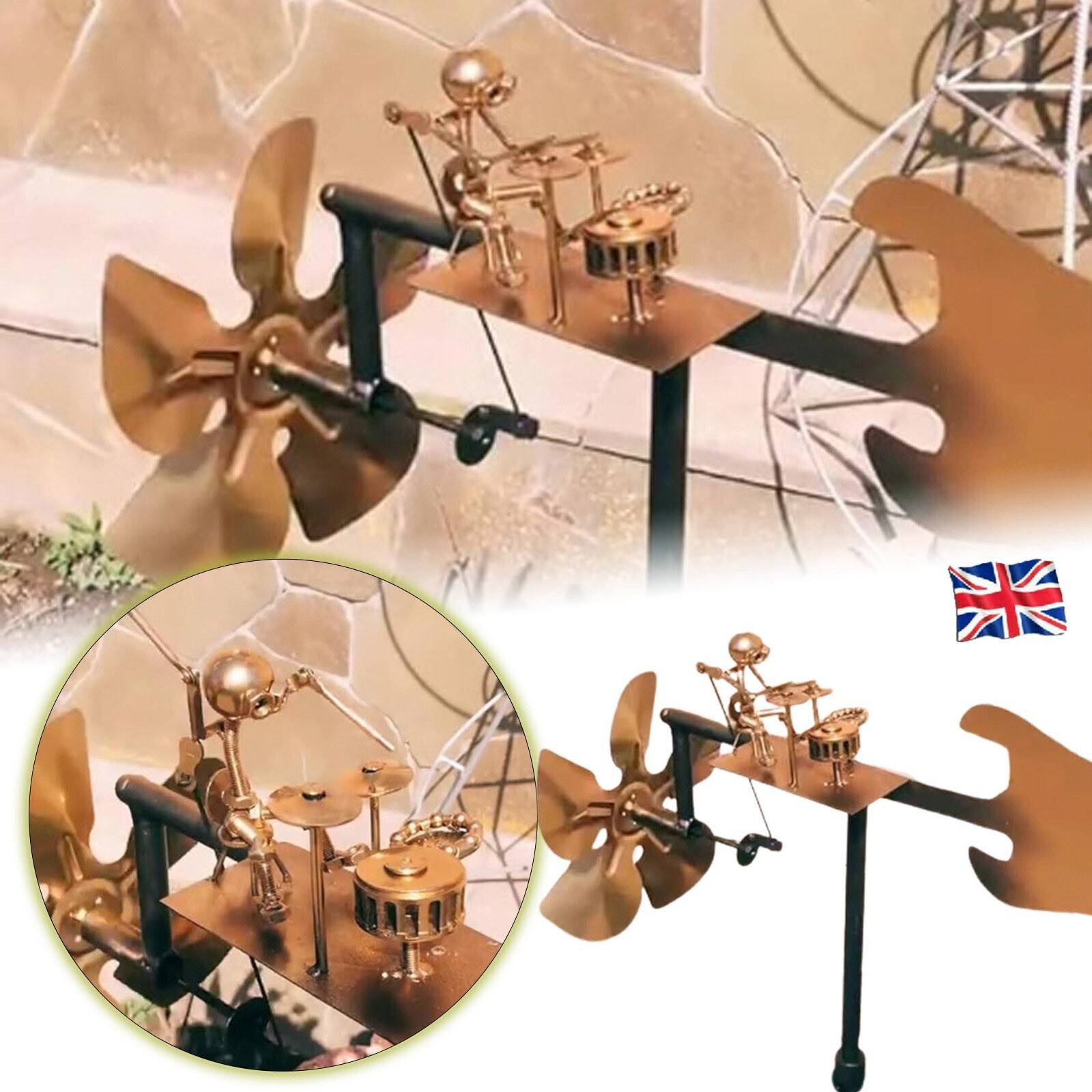 Drummer Windmill Garden Decoration,Handmade Metal Percussionist Music Windmill