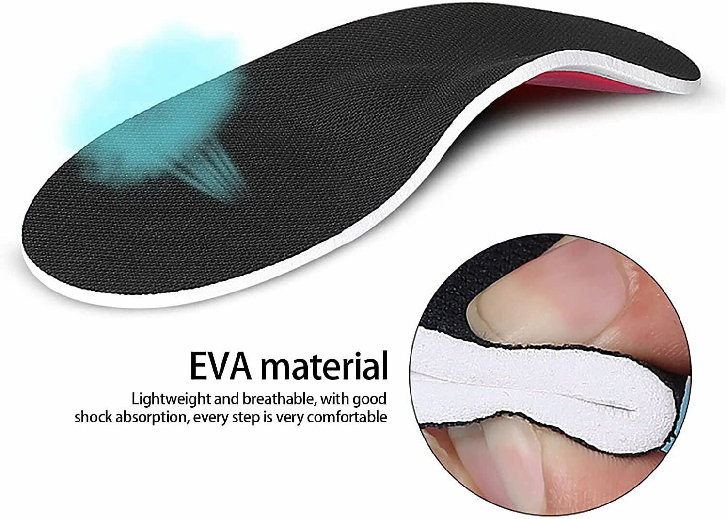 👞 [High Quality] The insoles are soft, lightweight, comfortable, breathable, and non-slip. The cushioning EVA foam base and soft step improve stability and facilitate natural foot movement for shock absorption and pain relief.