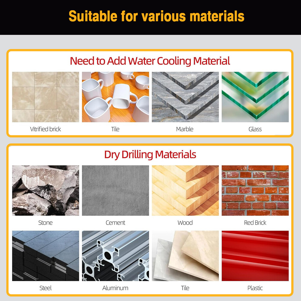 Wide range of applications: glass, tile, marble, wood, ceramic, stone, concrete, brick, hard plastic, cement, etc.