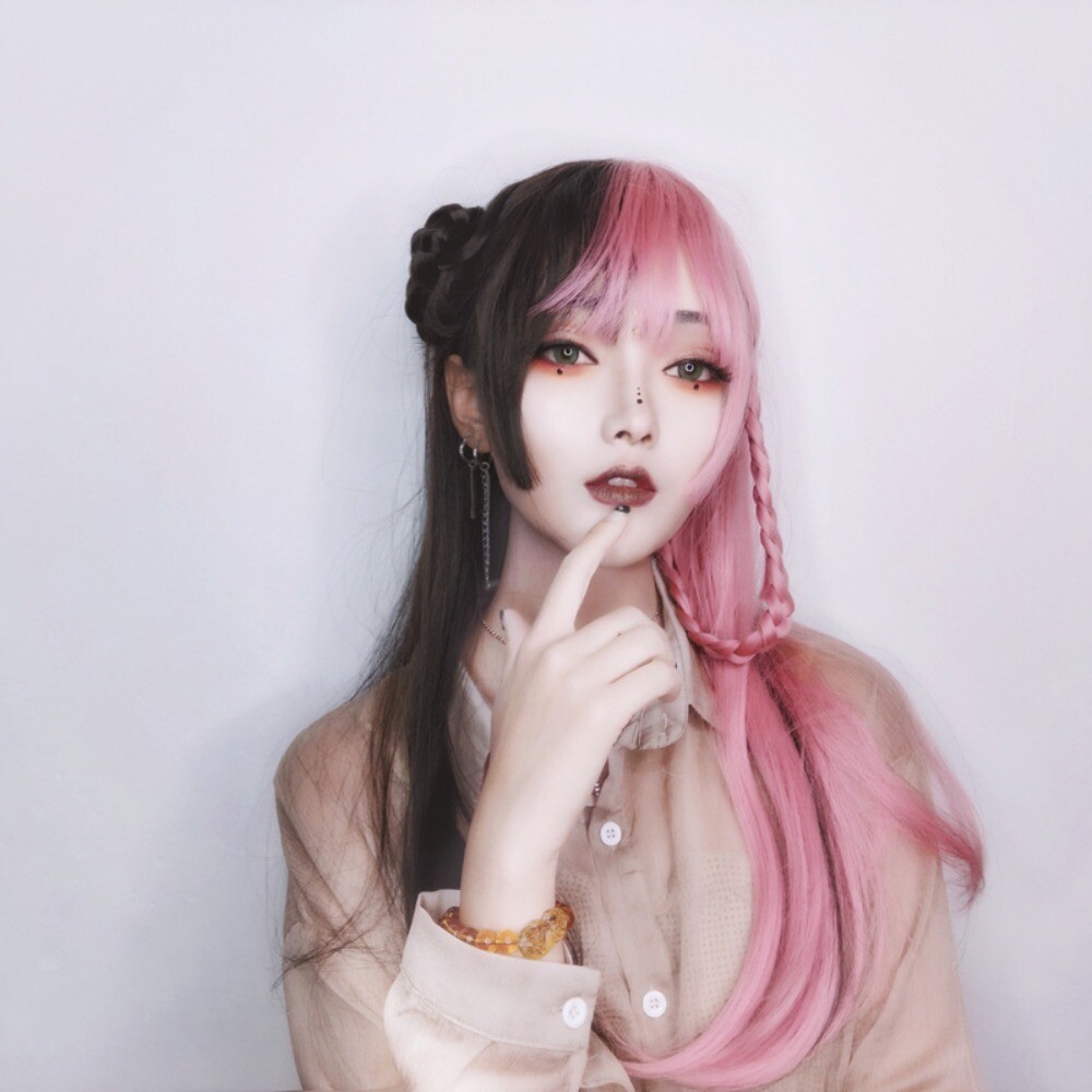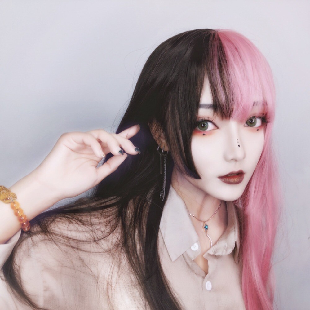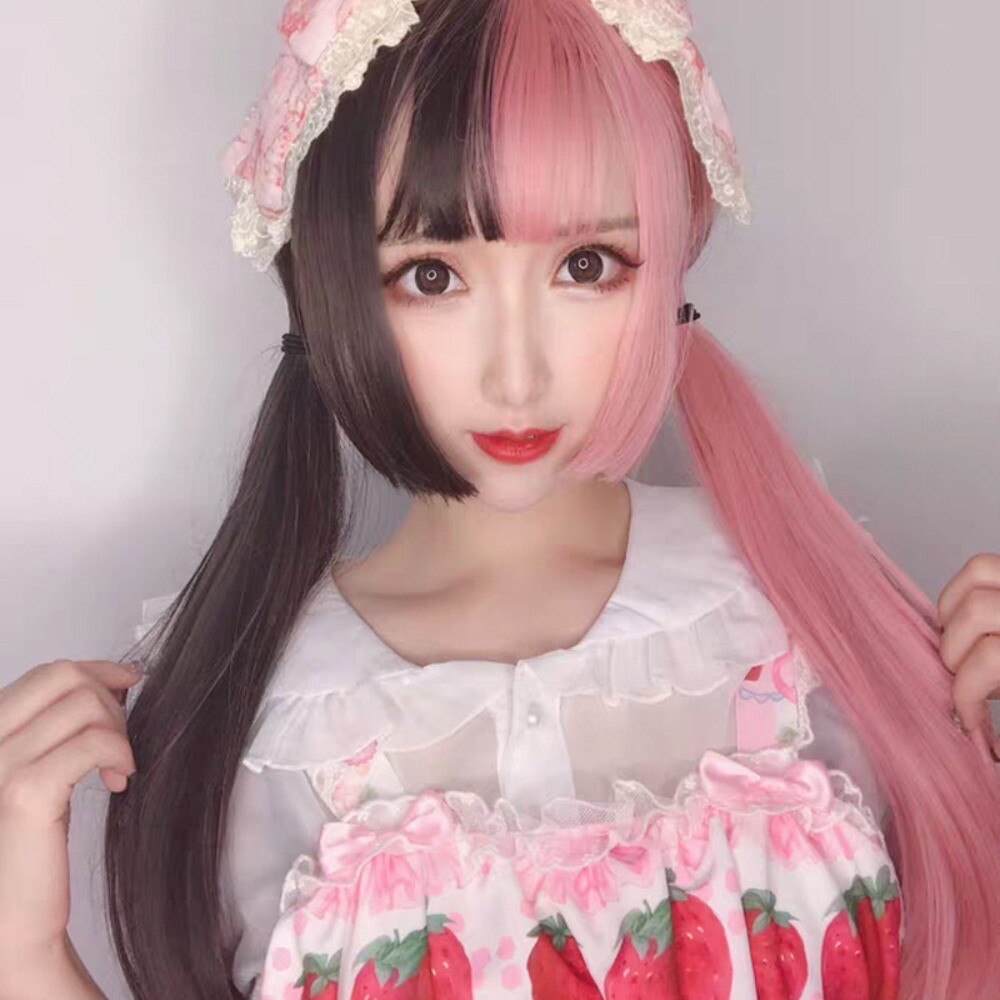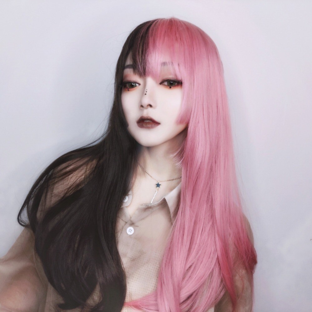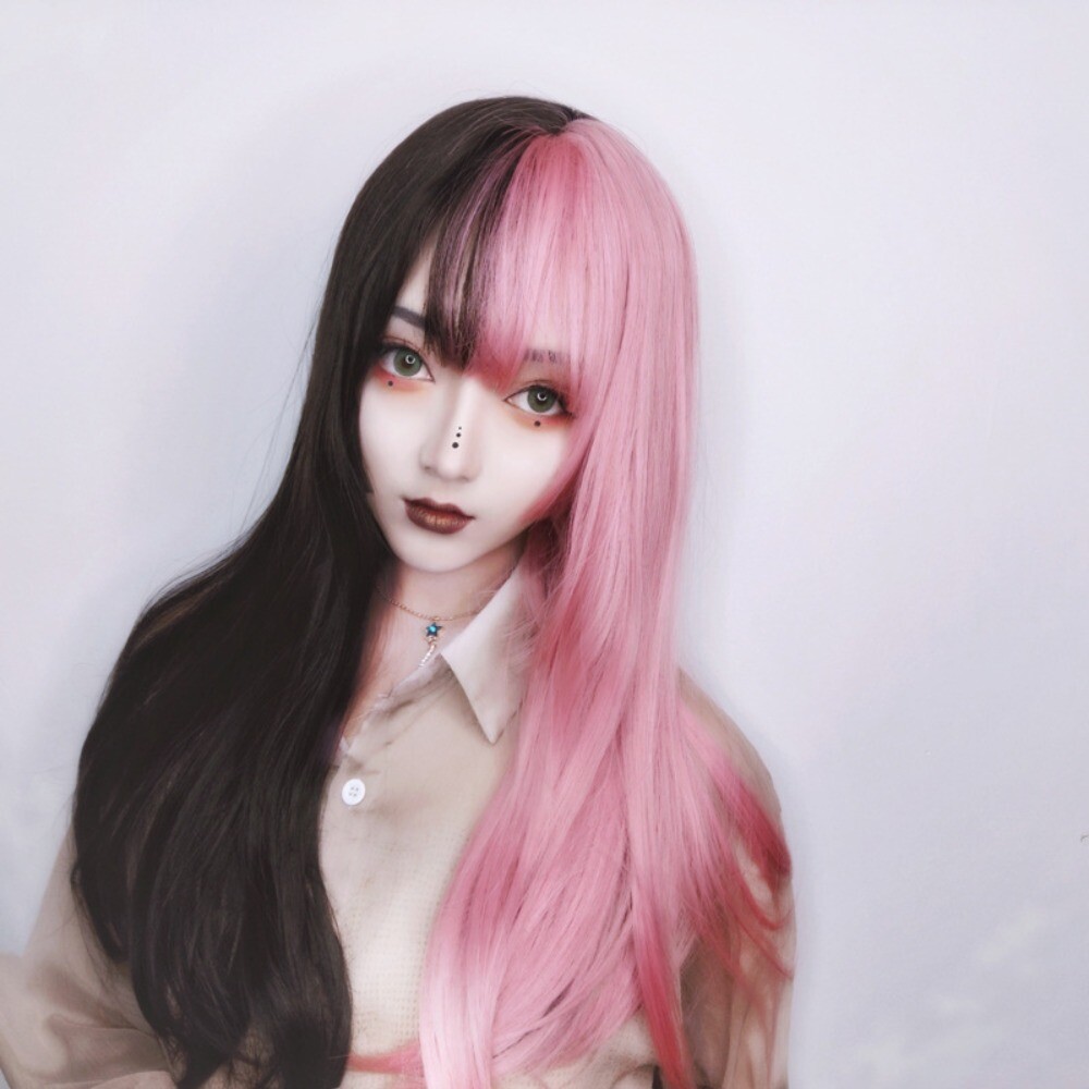 Two Tone Long Straight Hair Heat Resistant Fiber Pink And Black Wig Ombre Wigs