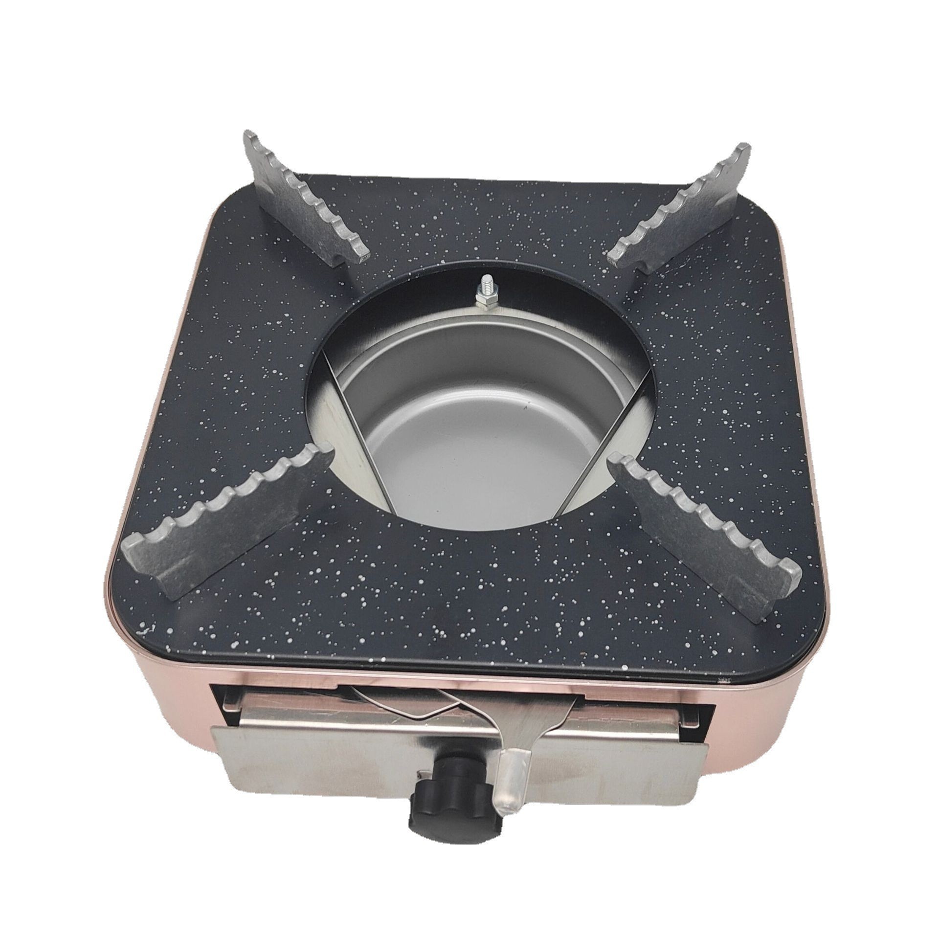Built-in alcohol stove, stable and heavy load, slider, easy to adjust firepower, stable and fixing frame and non-slip support feet, safe to use