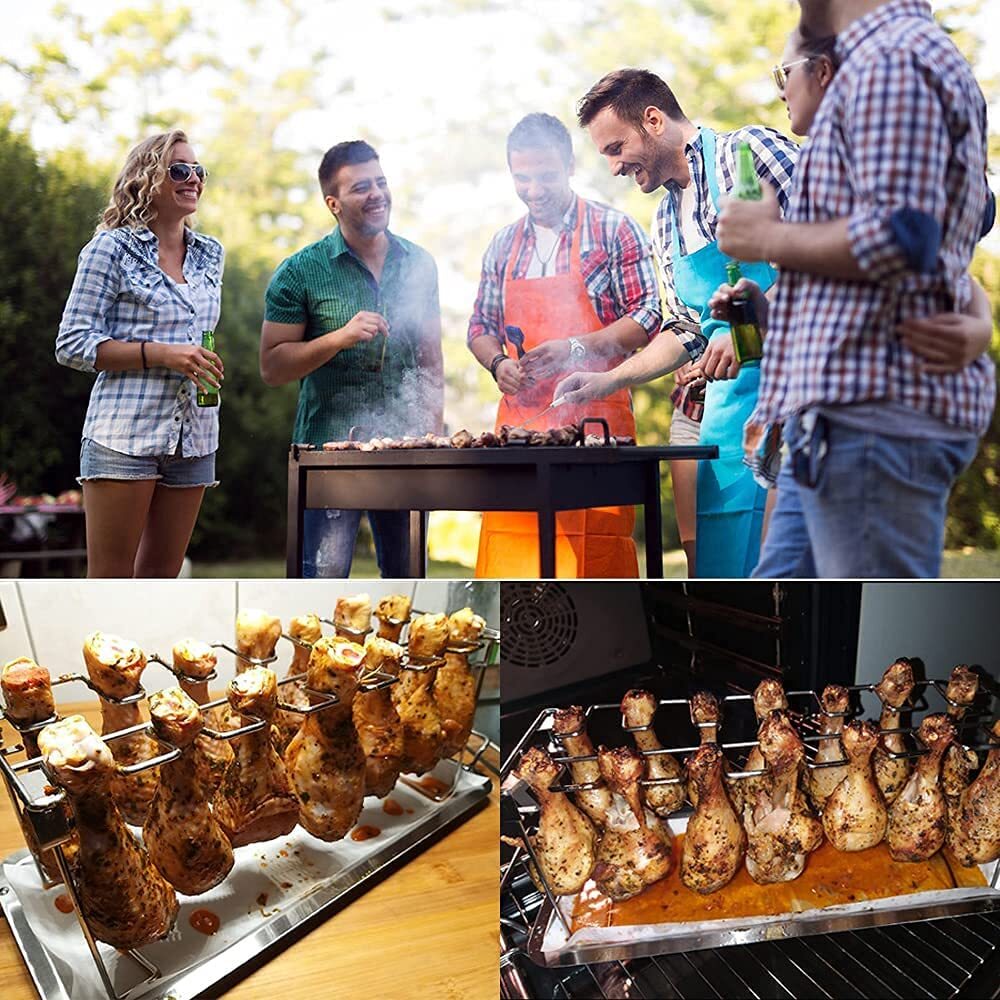 Chicken Leg Holder Holds up to 14 chicken legs. Can be used on an oven grill. It is very convenient to use at home or outdoors grill.