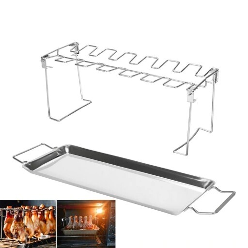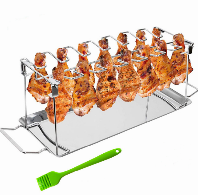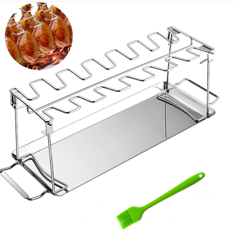 When you buy a chicken drumstick stand, you get a stainless steel drip tray and brush in addition to the drumstick stand. The production materials are made of healthy and environmentally friendly materials and can be used with confidence.