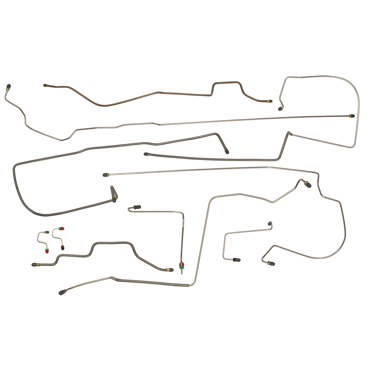 This preformed complete brake line kit will replace all the metal brake lines on your vehicle and includes the master cylinder lines, left front line and right front crossover line, intermediate lines, and rear axle lines/trailing arm lines.