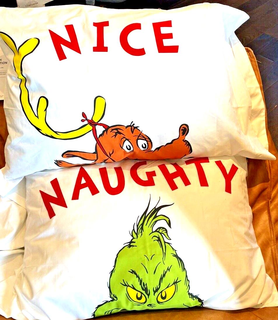 These naughty and nice pillowcases feature classic artwork of The Grinch™ and Max™.