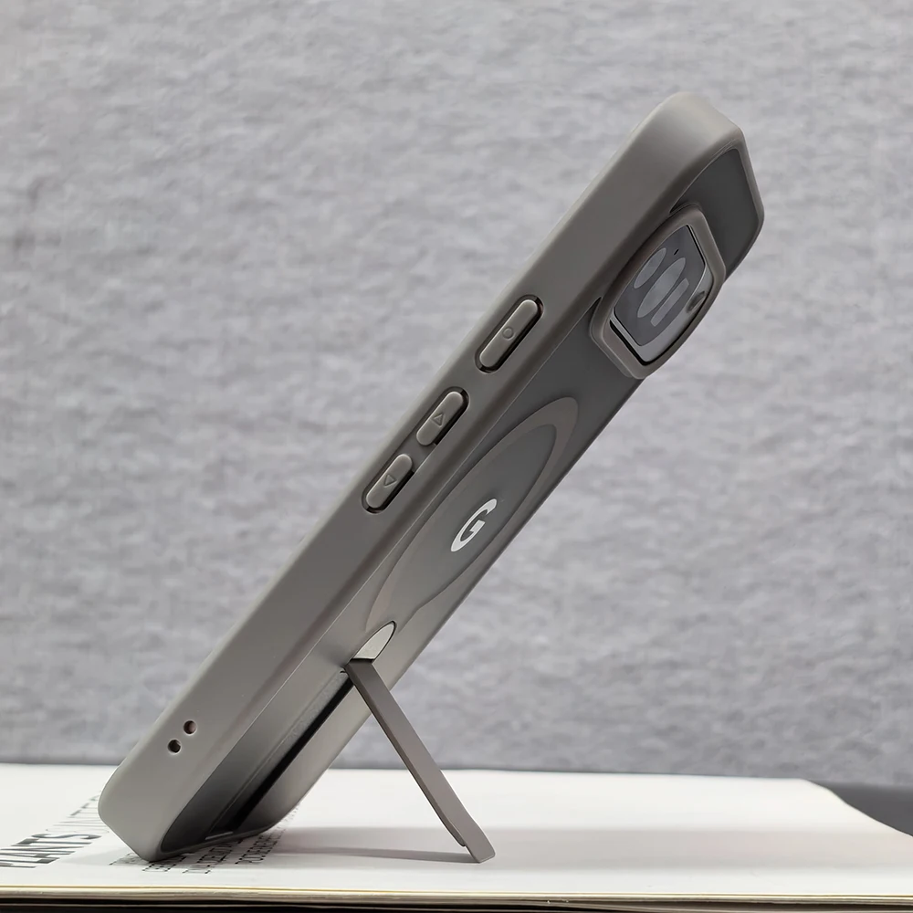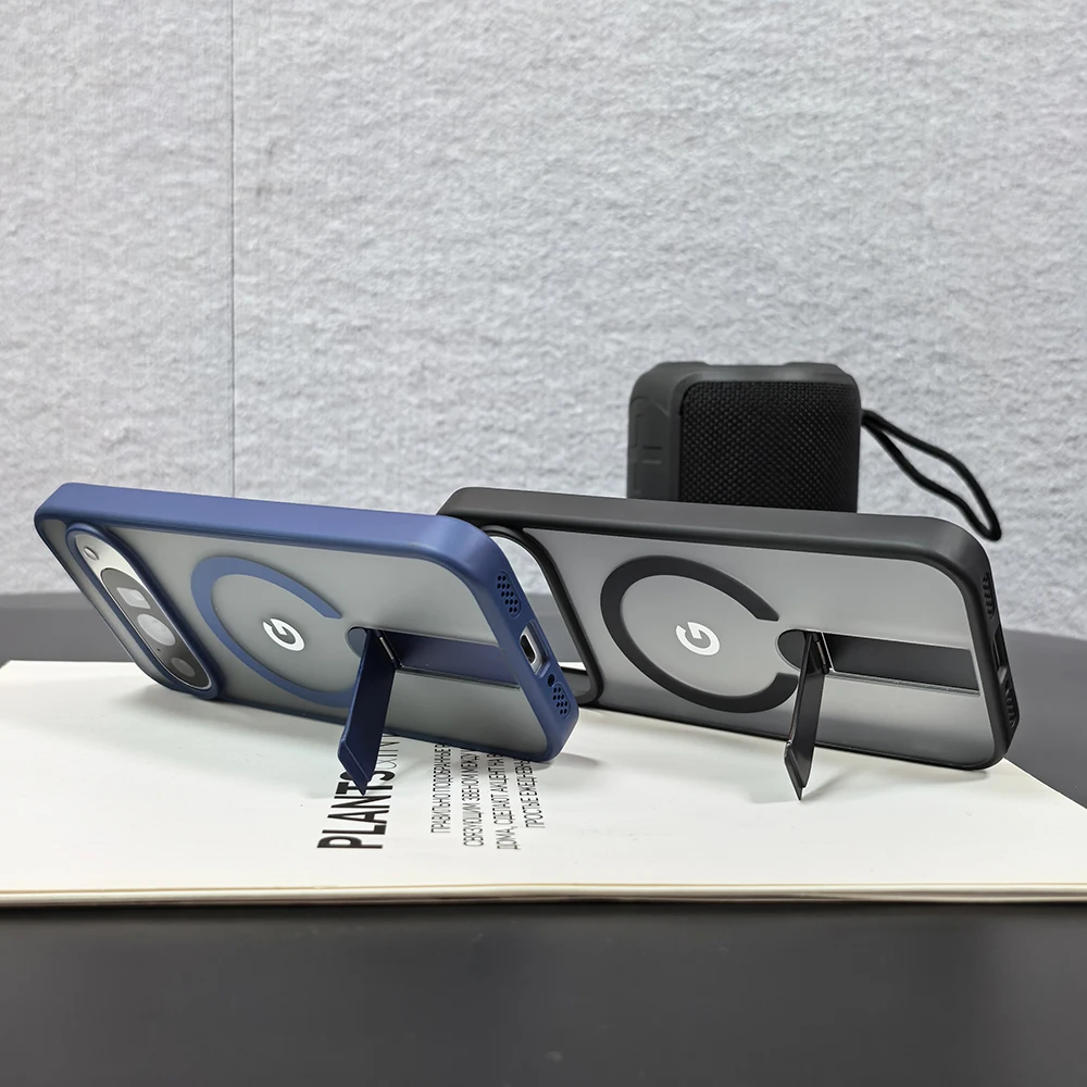 Diese hochwertige MagSafe Handyhülle mit Metall-Ständer wurde speziell für Google Pixel Modelle entwickelt.