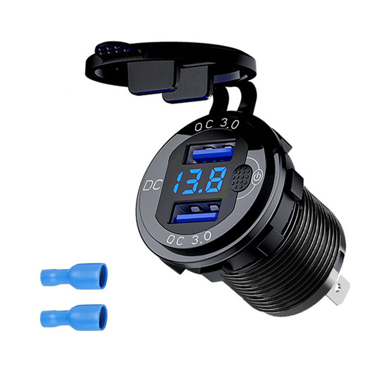 QC3.0 Dual USB Car Fast Charger Socket Power Outlet LED Voltmeter Waterproof
