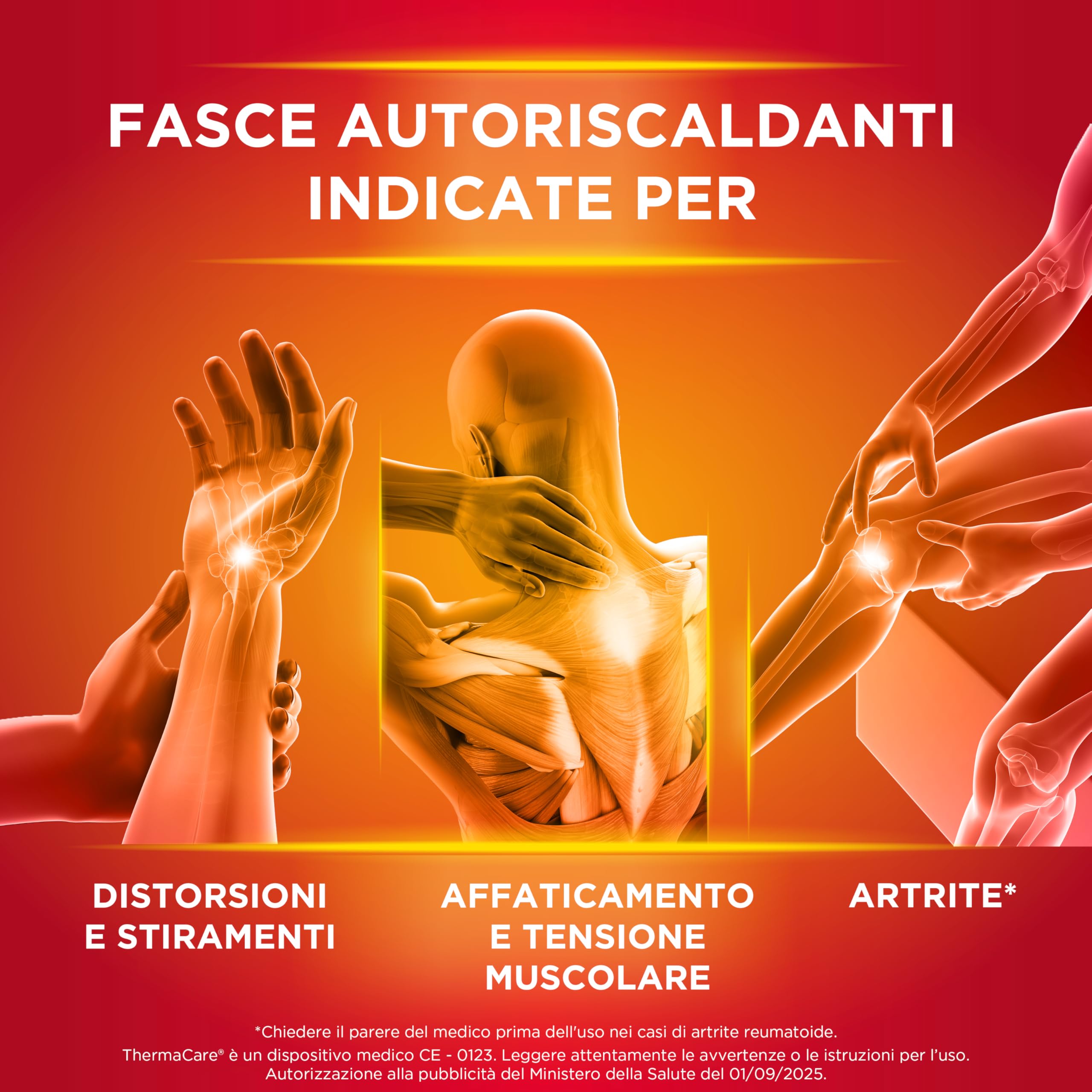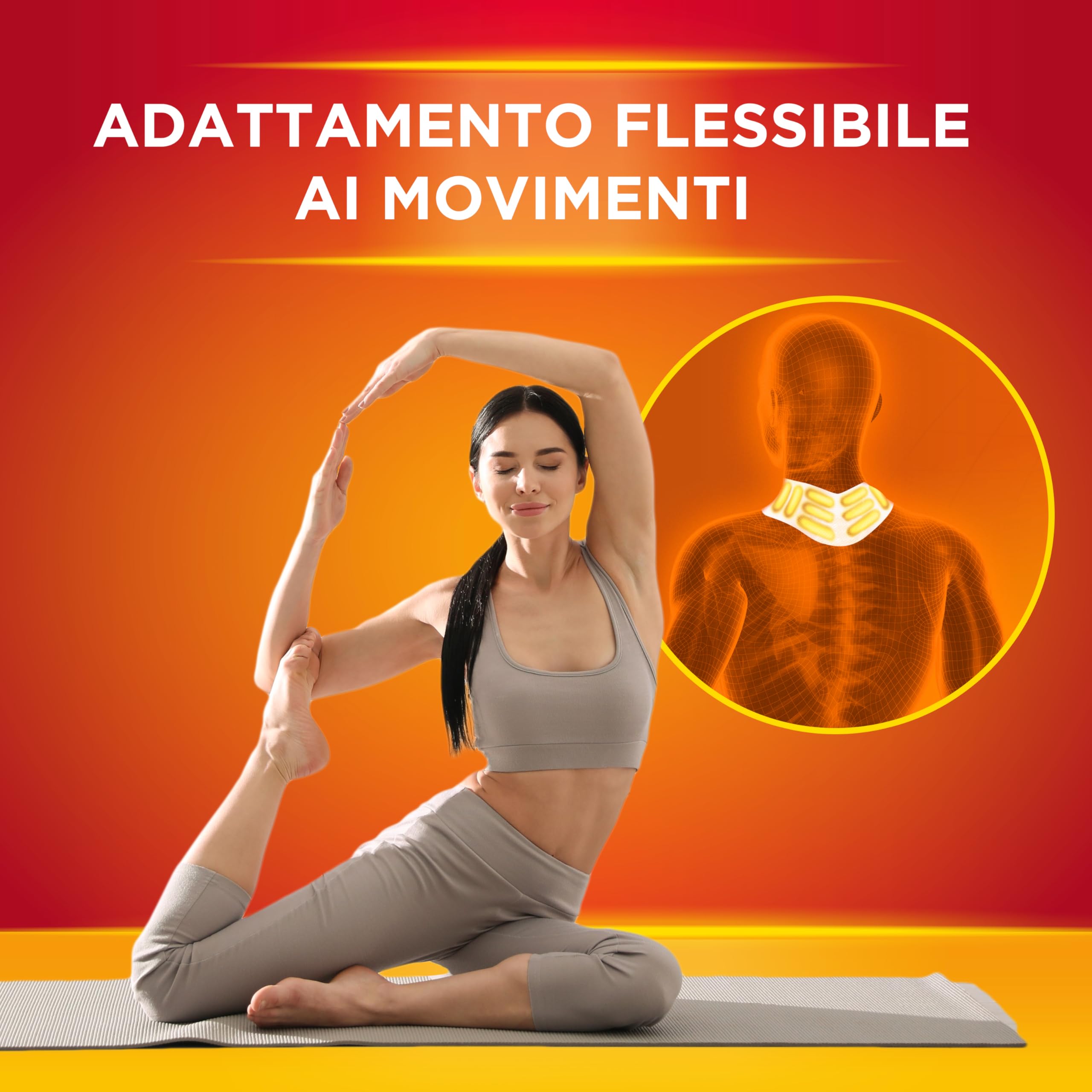 FASCE AUTORISCALDANTI: fascia di materiale soffice e confortevole con speciali celle brevettate che contengono ingredienti naturali che al contatto con l'ossigeno dell'aria sviluppano calore