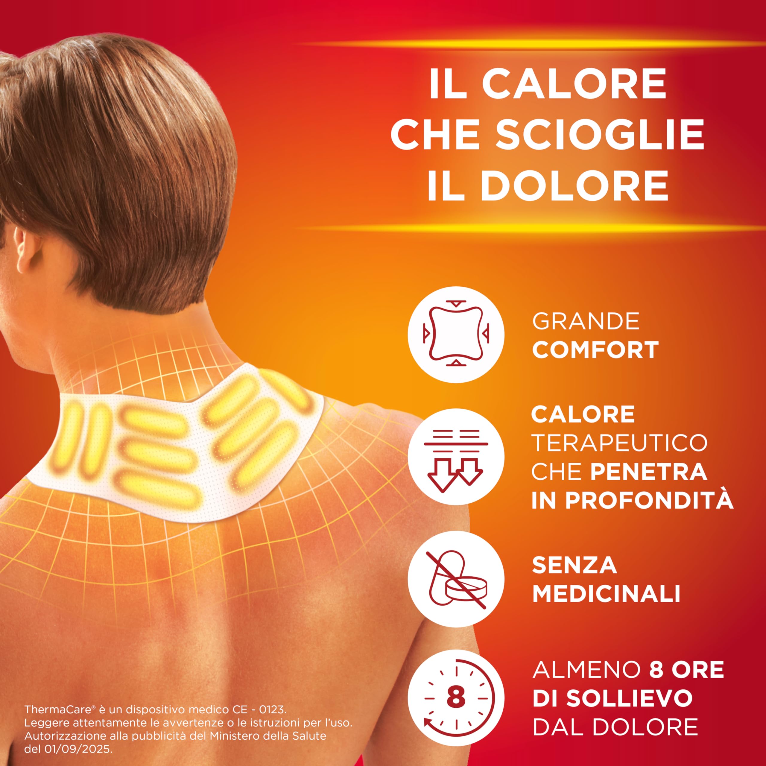 SOLLIEVO PROLUNGATO: se applicato per 8 ore, il calore costante di ThermaCare dona sollievo prolungato dal dolore fino a 16 ore