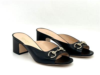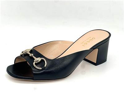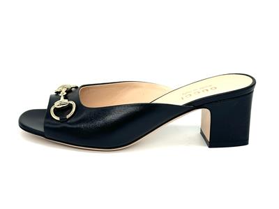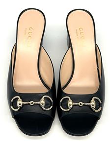 Signature light gold horsebit hardware nods to the designer's equestrian heritage on this Italian-made slide sandal.