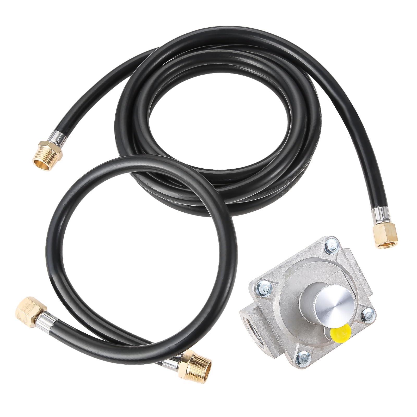 ▶【PRODUCT INCLUDE】: 1*2.13 Feet Low pressure propane hose 1/2" Male to 3/8" Female Flare, 1*10 Feet Low pressure propane hose 1/2" Male to 3/8" Female Flare, 1*5" Water Column Range Regulator.