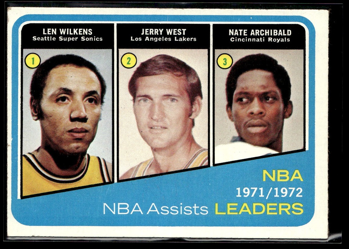| 1972-73 Topps NBA Assists Leaders (Lenny Wilkens, Jerry West, Nate Archibald) LL |