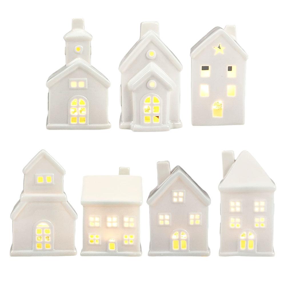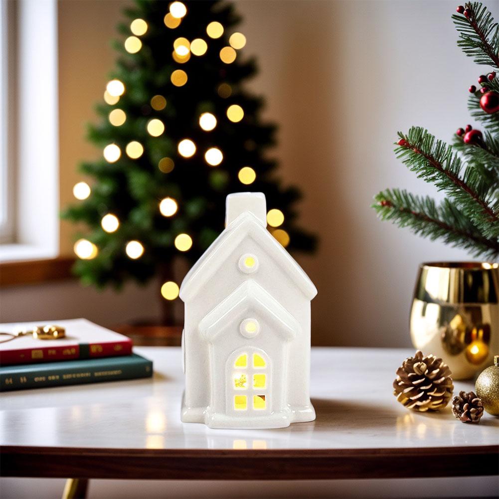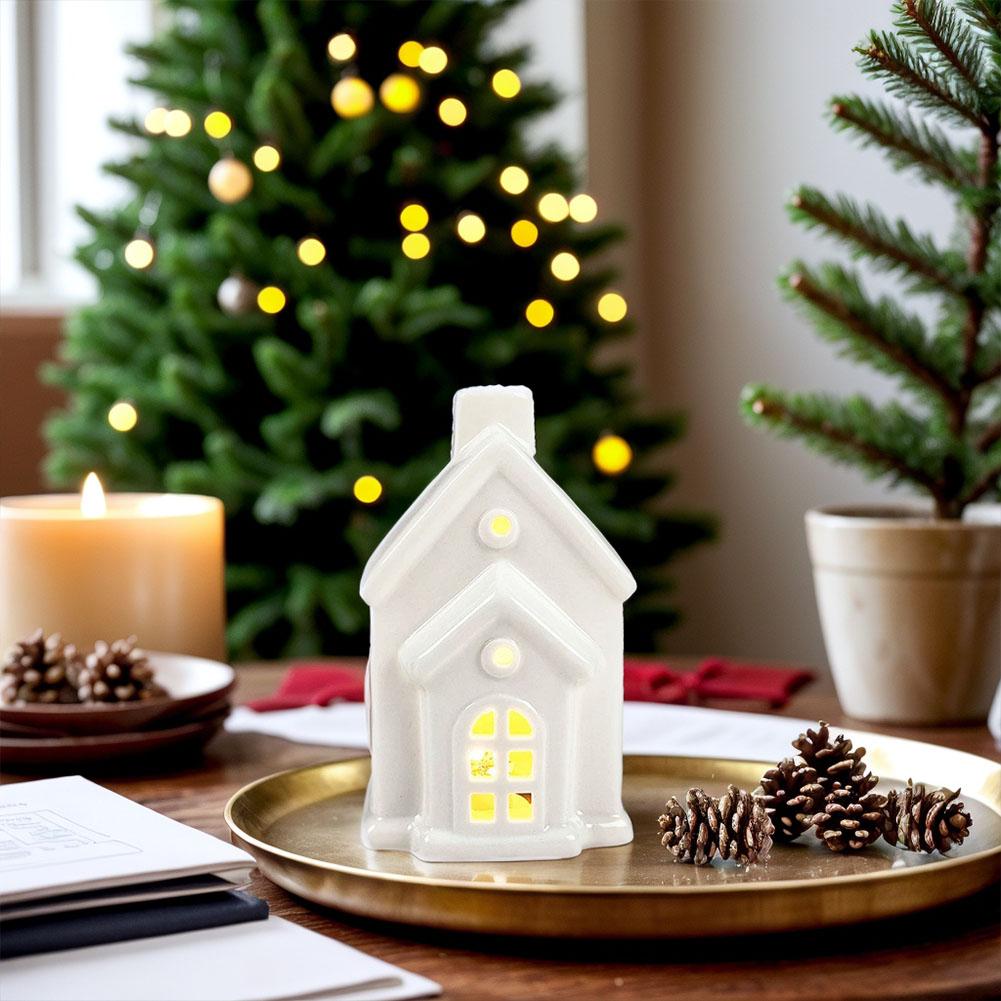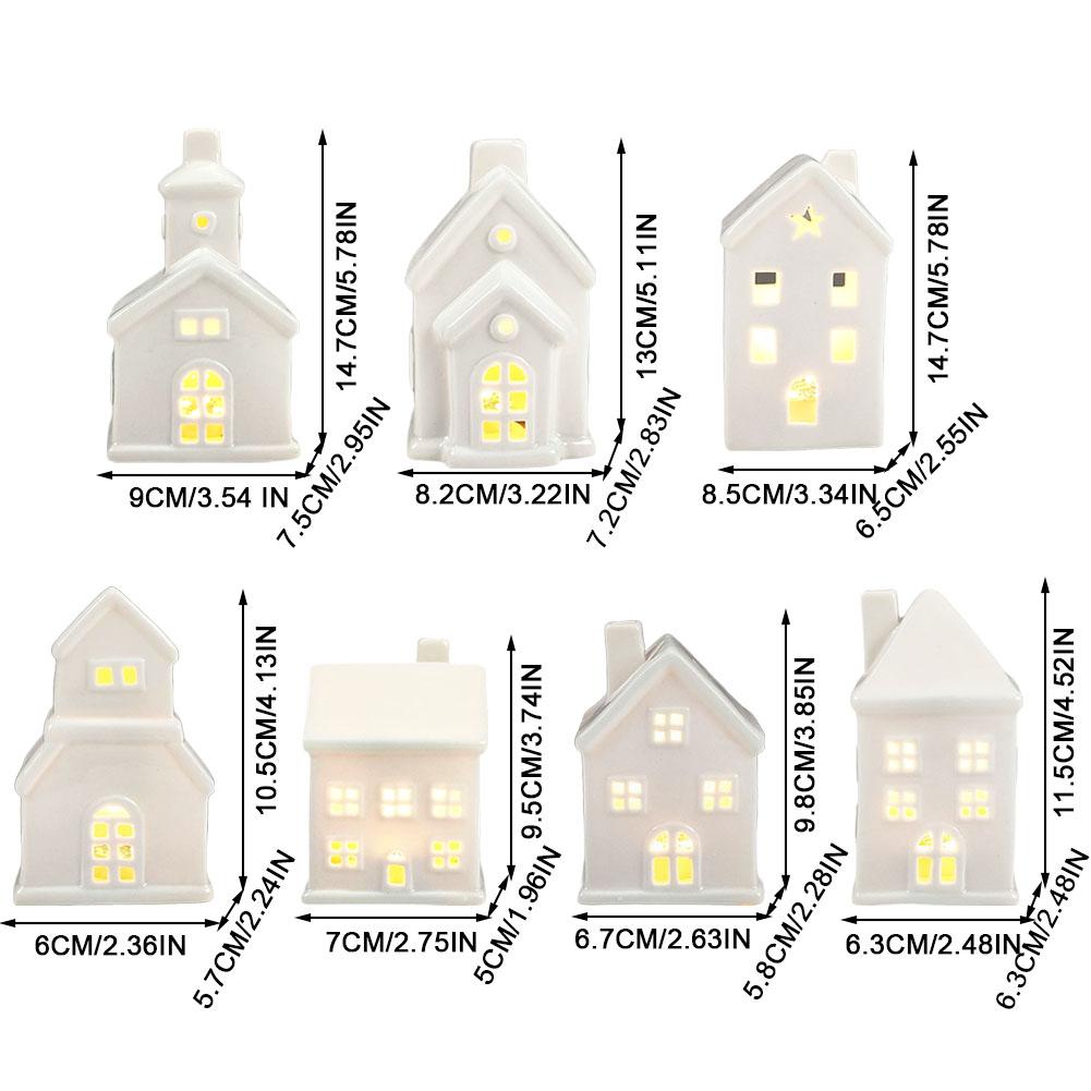 ENCHANTING WINTER WONDERLAND: Create an enchanting winter wonderland with our charming miniature Christmas village houses. Decorated in white, these beautifully crafted ceramic houses evoke the magical atmosphere of a snowy Christmas Eve, adding a touch of whimsy and cheer to your holiday decor.