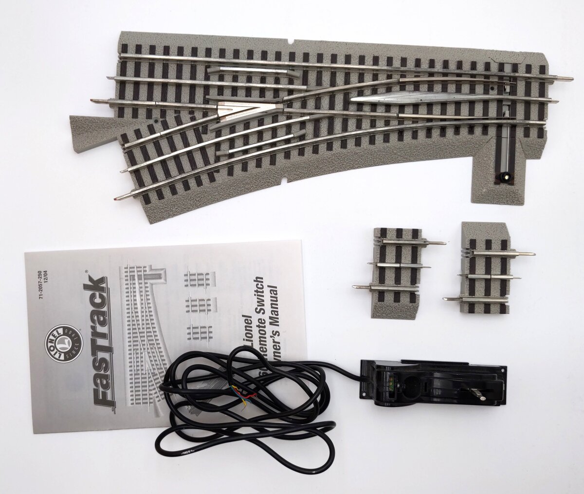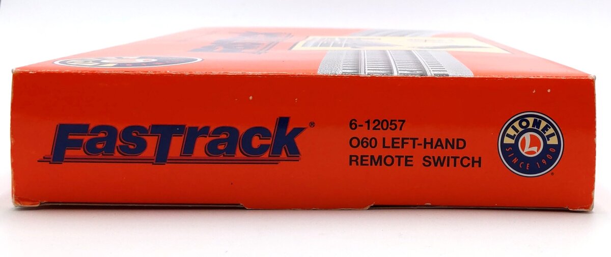 Here is a Lionel 6-12057 O60 Left Hand Remote-Control FasTrack Switch Turnout. It features an operating lighted signal. Dimensions: Length: 14 1/2 inches Straight, 22 1/2-Degree turnout