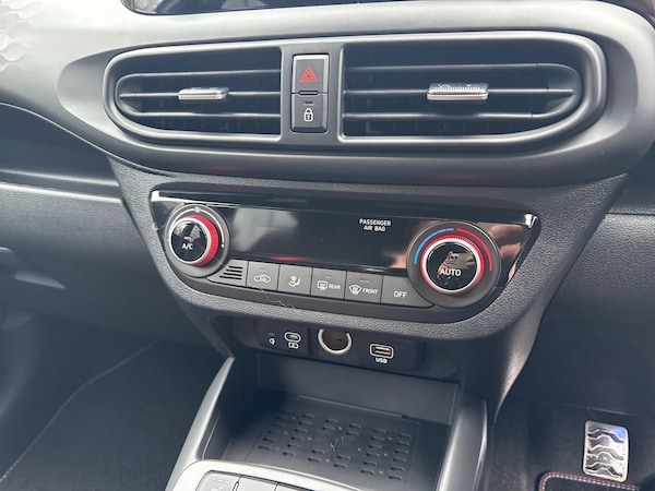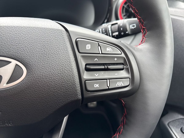 ..Driver Convenience,Cruise Control with Speed Limiter,Driver Attention Alert - DAA,FCA - Forward Collision Avoidance Assist,Lane Departure Warning System with Lane Keeping Assist,Rear Parking Sensors,Rear-View Parking Camera,Trip Computer,Tyre Pressure Monitoring System - TPMSEntertainment,8in Touchscreen Navigation inc MapCare-Live Services and Bluelink Connectivity,Bluetooth Connectivity with Voice Recognition,Centre Console Display - 8in Touchscreen,E-Call,Front USB Ports - USB-C Charging - USB-A Data,Rear USB Port - USB-C Charging,Speakers - 2 Rear,Wireless Android Auto,Wireless Apple CarPlay,Wireless Charger - PhoneExterior,16in Alloy Wheels,Body Colour Bumpers,Door Mirrors - Body Coloured,Door Mirrors - Electric Adjustment - Folding and Heated,Electric Windows - Front and Rear,Exterior Door Handles - Body Coloured,Flat Metal Hyundai Emblem,Front Grille,Indicator Lights - Door Mirror,N Line Badging,N Line Package,Privacy Glass - Rear Side Window and Tailgate,Tyre Repair KitInterior,Air Conditioning - Climate Control,Blue LED Mood Lighting - Front,Dashboard Finisher in Dark-Grey Metal,Flame Red Air Vent Surrounds,Floor Mats,Full-Width LCD Cluster Display with 4.2in,Heated Front Seats,Heated Steering Wheel,Honeycomb Design Detail - Dash and Door,N Line Branded Gear Stick,N Line Branded Leather Wrapped Steering Wheel,Rear Occupancy Alert,Split Folding Rear Seats - 60-40,Steering Wheel with Audio - Phone and Cruise ControlsEntertainment,8in Touchscreen Navigation inc MapCare-Live Services and Bluelink Connectivity,Bluetooth Connectivity with Voice Recognition,Centre Console Display - 8in Touchscreen,E-Call,Front USB Ports - USB-C Charging - USB-A Data,Rear USB Port - USB-C Charging,Speakers - 2 Rear,Wireless Android Auto,Wireless Apple CarPlay,Wireless Charger - Phone