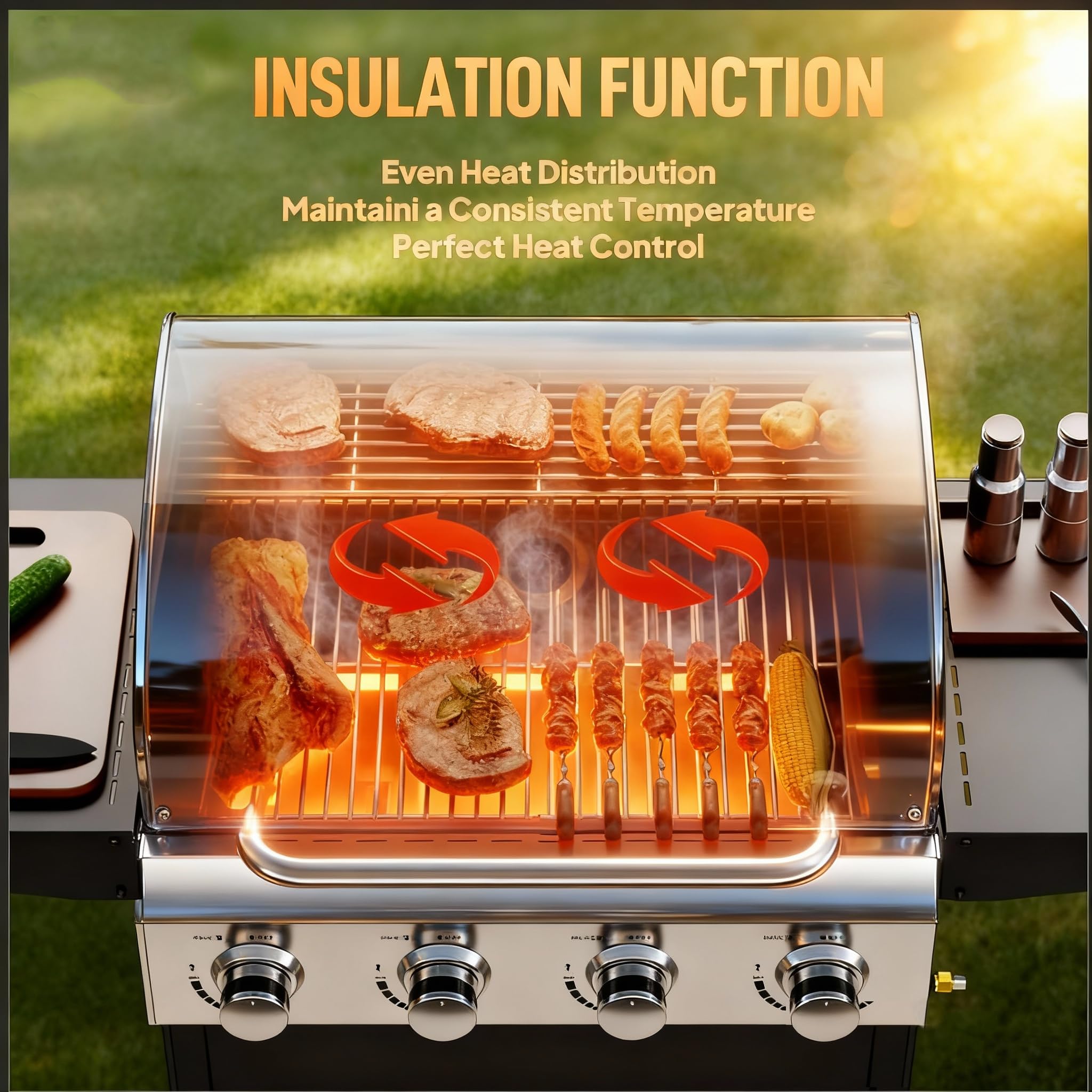 Uniform Heat - This propane grill is equipped with 4 independent stainless steel grill burners, providing a total 40000 BTU of grill. You can also adjust the flame size as needed and provide multiple grilling options. Whether it's grilled eggs, pancakes, grilled cheese, or steak, you can easily complete it