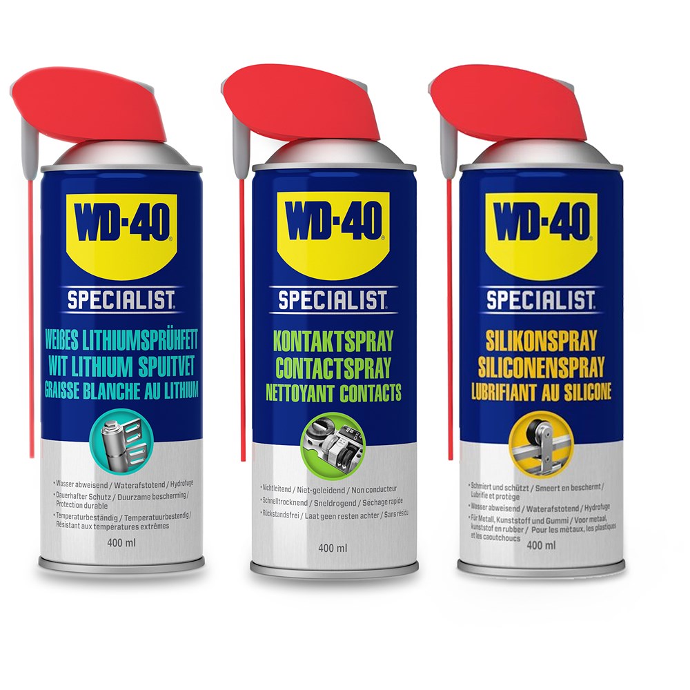 WD-40 1x 400 ml Kontaktspray + 1x 400ml Weißes Lithiumsprühfett + 1x 400ml Silikonspray