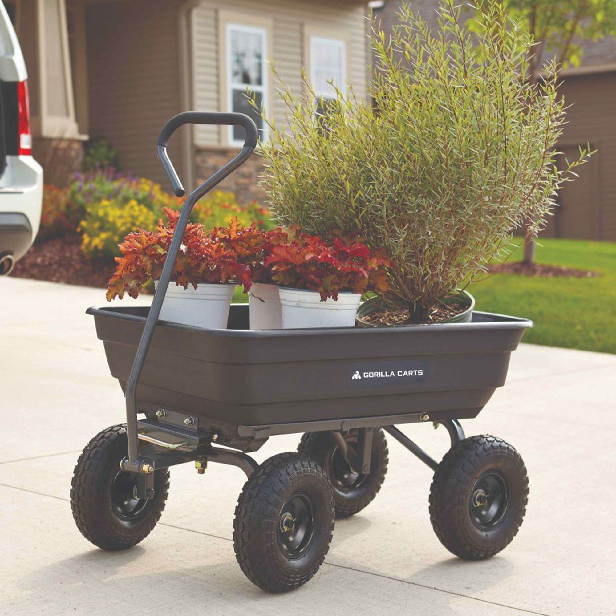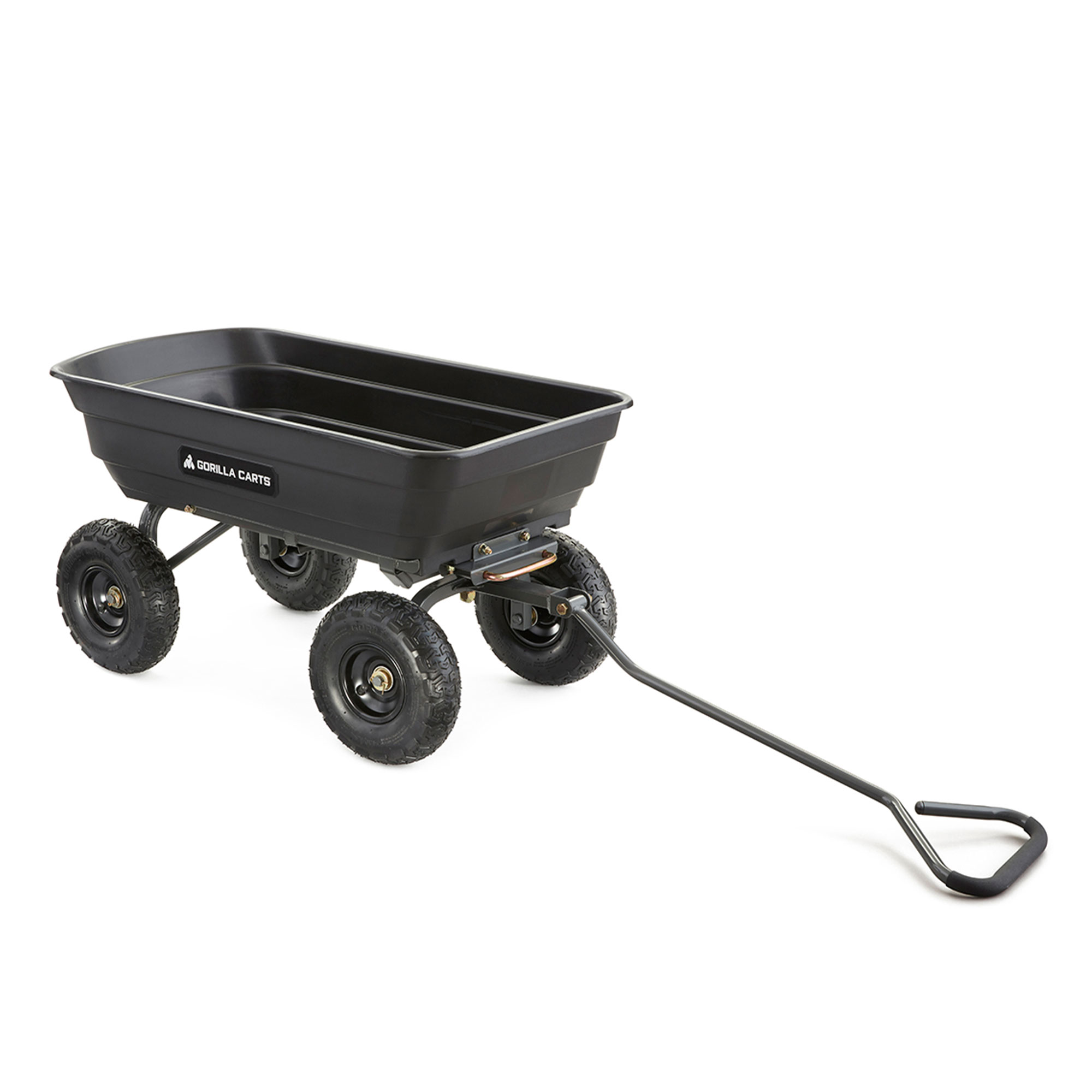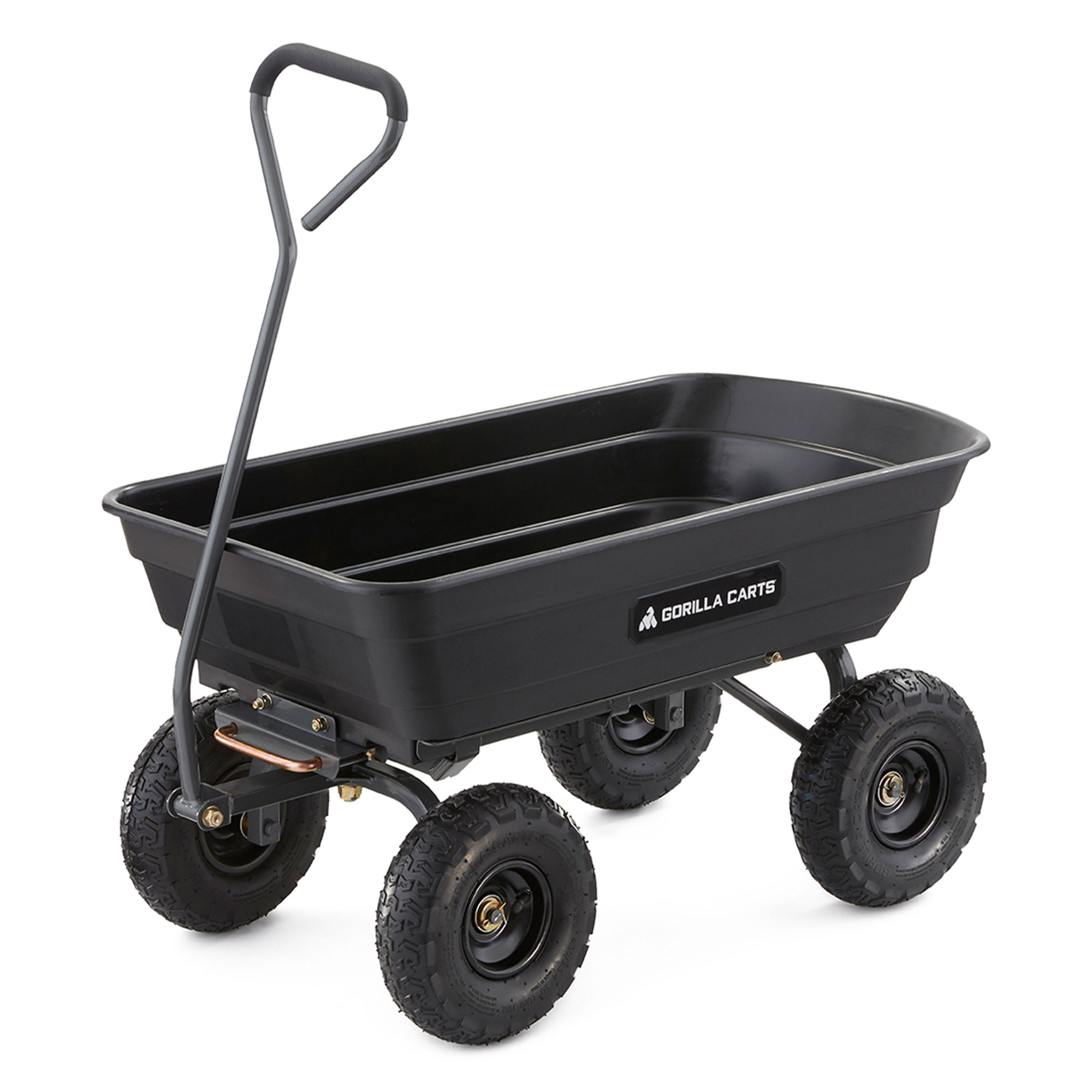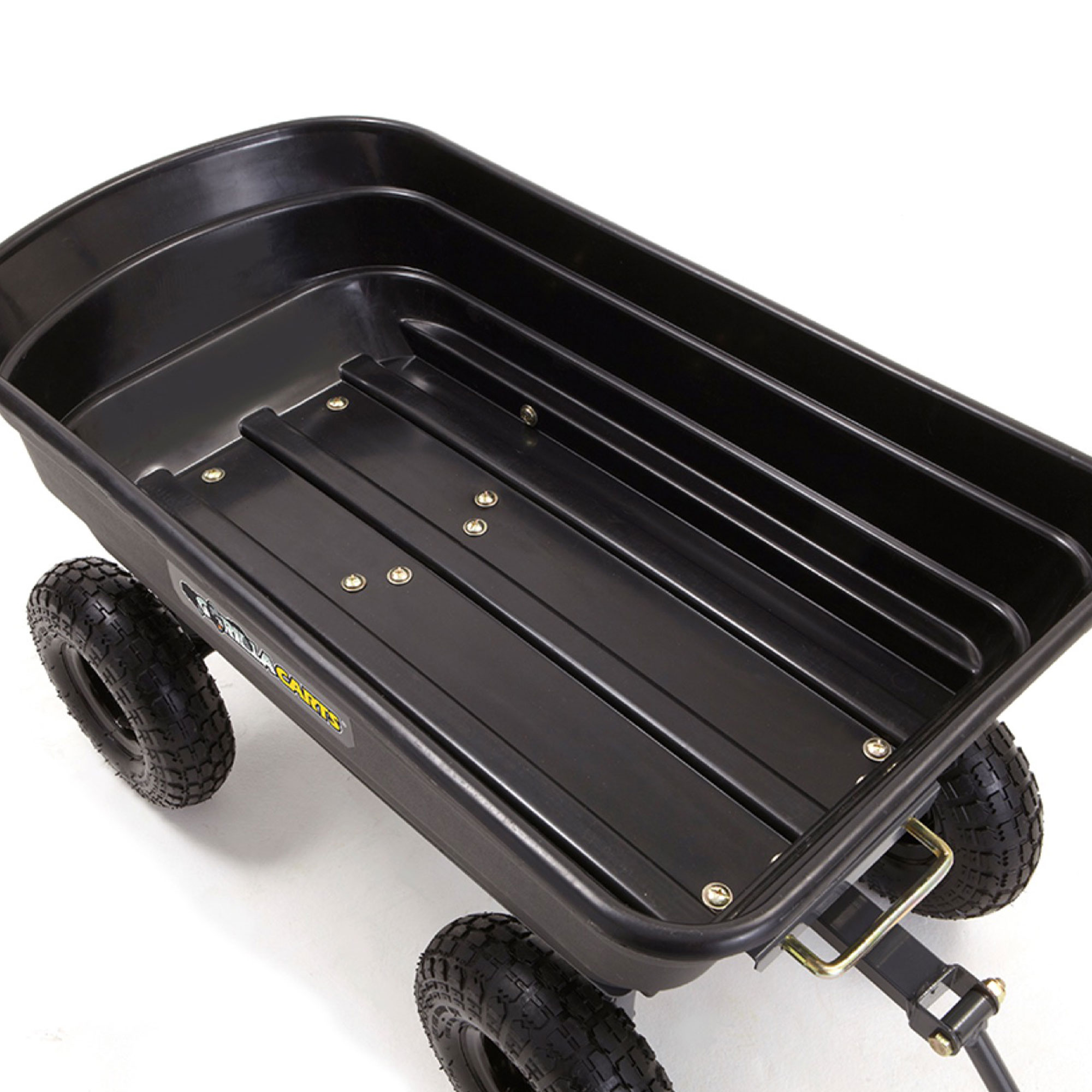 Haul heavy loads and get your items where they need to go with the Poly Yard Dump Cart from Gorilla Carts. With a carrying capacity, this wagon cart is great for transporting tools and supplies through your yard, throughout the garden, or around the farm.