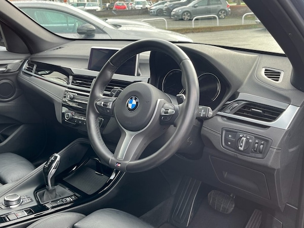 This 2019 BMW X1 20i M Sport boasts a single owner and a clear vehicle history check, offering peace of mind. Finished in the sporty M Sport trim, this 2.0 litre petrol model meets Euro 6 emission standards and benefits from low CO2 emissions. It comes equipped with desirable features such as Apple CarPlay, electrically folding exterior mirrors with anti dazzle, and 18 inch M Double Spoke style alloy wheels with run flat tyres. Further enhancing its appeal are extended lighting and Park Distance Control for both the front and rear, including parking assistance sensors. The BMW X1 20i M Sport delivers an engaging driving experience, accelerating from 0 to 60mph in just 7.6 seconds. These highlights demonstrate how this particular vehicle stands out from others in its class, offering a combination of performance, advanced technology, and practical features. Its well maintained provenance and comprehensive specification make it a compelling choice for those seeking a premium compact SUV. If you are planning to come to see one of our cars, then please call us on in advance to make sure it is still available, is on site and ready to be viewed. We can provide a personalised walk-around video via WhatsApp - please just ask! All our vehicles are checked via Experian Auto Check, come fully prepared with 12 months MOT, 12 Months AA break down cover and 6 months Parts & Labour Mechanical Warranty. Finance options are available - please call for a quote. Finance acceptance is subject to status..Sun Protection Glazing, Apple CarPlay, Storm Grey, PDC - Park Distance Control - Front and , Perforated Dakota Leather - Black with G, Apple CarPlay, 18in Alloy Wheels - Light M Double Spoke Style - 570 M Bi-Colour with Run Flat Tyres, 12V Power Socket in Centre Console Front with Blanking Plug, 18in Alloy Wheels - Light M Double Spoke Style - 570 M Bi-Colour, 40-20-40 Electrically Split Folding Rear Seat with 60-40 Manual Sliding Bench, Access to BMW Connected Plus (12 Month Subscription From New), Active Guard, Adaptive LED Headlights with High-Beam Assistant, Air Conditioning Automatic with Two-Zone Control, Airbags, Alarm System - Thatcham 1 with Remote Control and Engine Immobiliser, Armrest Front - Free Standing and can be Fixed in Five Positions, Automatic Tailgate, Automatically Dimming Rear View Mirror, BMW ConnectedDrive Online Services, BMW Emergency Call, BMW Navigation, BMW Professional Radio with Single CD Player - with MP3 Playback Compatibility, BMW TeleServices, Battery Safety Cut Off, Bluetooth Hands-Free Facility with USB - USB Type A - 1.5 A Audio Interface, Brake Pad Wear Indicator - Front and Rear, Bumper System Front and Rear - Replaceable Deformation Elements for Impacts Up to 9mph, Central Locking Switch - Doors - Fuel Filler Cap - Luggage Compartment, Centre Console - Black - High Gloss, Check Control Warning System for Monitoring of Lights and Door-Luggage Compartment Open Warning, Child Proof Locking System - Rear Doors, Child Seat ISOFIX Attachment for the Two Outer Rear Seats and Front Passenger Seat with Anchorage Points, Condition Based Service, Contrast Stitching on Centre Console in Blue - Silver - Grey or Brown to Match Seat Upholstery, Crash Sensor - Activating Central Locking Release - Hazard Warning Lights - Battery Safety Cut Off - Interior Lighting, Cruise Control with Brake Function, Cupholders - Two, DAB Digital Radio, DSC - Dynamic Stability Control Plus, Direction Indicator Lights - Clear Lenses, Direction Indicator Side Lights Integrated in Exterior Mirrors, Door Sill Finishers - BMW Designation - Front - Black, Door Sill Finishers - M Designation - Front, Drive Performance Control - ECO PRO - Comfort - Sport and Sport Plus, Dynamic Brake Lights, EDLC - Electronic Differential Lock Control, EPS - Electric Power Steering, Electric Windows - Front and Rear with Open-Close Fingertip Control - Anti-Trap Facility and Comfort Closing Function, Electrically Operated Handbrake - Parking Brake, Exhaust Tailpipe - 75mm -