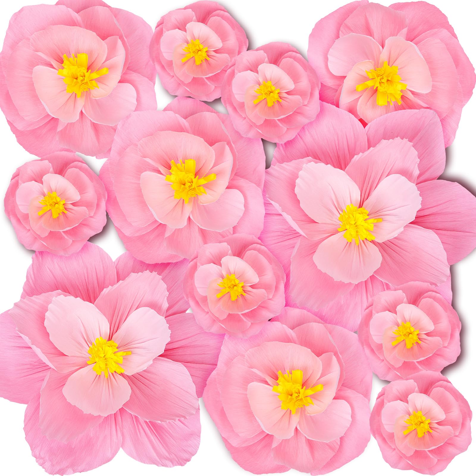 Features: The giant crepe paper flowers are tied together, you just need to unfold the paper flowers, carefully pull the layers apart one by one, then organize the details to make the beautiful paper flowers ready. Please be careful not to tear them violently when using them, and do not untie the white ribbon in the middle. You can creatively arrange the 12 pcs artificial paper flowers in various combinations, they come in brightly colors, with distinct layers between the petals. Such as photo walls, nursery flower wall decoration, front windows, commercial displays, home windows, and living room decorations. These room decorative flowers will bring you a wonderful experience. Specifications: Material: paper Color: pink Size: about 24 inches diameter, 12 inches diameter and 6 inches diameter Package includes: 12 x Paper flowers Notes: Manual measurement, please allow slight errors on size. The color may exist a slight difference due to different screen displays.