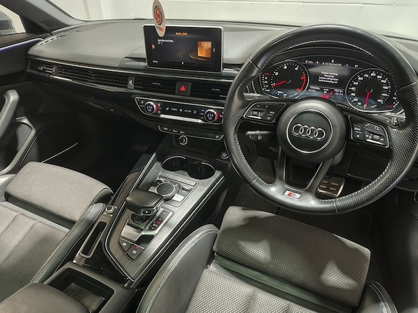? Audi A4 2.0 TDI S line S Tronic Euro 6 (s/s) 4drHuge Spec • Bang & Olufsen • 2 Keys150,560 miles 2016 (16 reg)£7,995? Huge Spec • B&O Sound • S line • Moonlight Blue Drives Excellent 2 Keys Full Service History — incl. Cambelt + S-Tronic Services Moonlight Blue Metallic — Stunning Colour Bang & Olufsen 3D Sound System Tilt & Slide Sunroof ? Freshly Serviced / Ready to Go Nationwide Delivery Available Card Payments Accepted ? Extended Warranty Available?? Highlight Factory Options (Fully Loaded) Premium & Comfort•Bang & Olufsen 3D Sound System (P9VS)•Sunroof — Tilting & Sliding (3FE)•S line Sports Package (P04H, PWQV, PPQD)•Sports Suspension (1BE)•Sports Seats + 4-way Lumbar Support (P7P1, PQ1D)•Ambient Lighting (PQQ2)•Keyless Go — Central Locking System (4I6)•Auto-Dimming Frameless Interior Mirror (4L6) ? Safety & Driver Assistance•Parking Sensors — Rear (P7X1)•Cruise Control (P8T6)•Audi Pre Sense City (6K8)•Hold Assist (UH2)•Tyre Pressure Monitoring System (7K1)•LED Headlights + LED Rear Lights (P8IT, P8SP)•Dynamic Headlight Range Control (P8Q3) Tech & Navigation•MMI Navigation Plus + Audi Connect (P7UG, PI8H, PIT1)•Digital DAB Radio (PQV3)•Audi Phone Box (P9ZE)•3-Zone Climate Control (9AQ) ? Exterior Styling•S line Exterior Package (PPQD)•High Gloss Styling Pack (4ZB)•18"" 5-Spoke Dynamic Alloy Wheels (PPRA)•Privacy Glass & Acoustic Front Windows (VW6)•Piano Black Interior Inlays (5TL)? Additional Features•Electric folding & heated mirrors•Heated front seats•Automatic tailgate•Space saver spare wheel•ISOFIX front & rear•7-Speed S-Tronic gearbox•Moonlight Blue Metallic with Black S Line Interior.