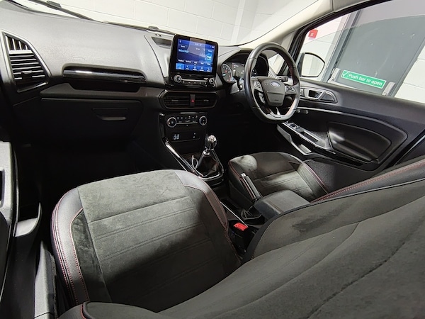 Ford EcoSport 1.0T EcoBoost ST-Line Euro 6 (s/s) 5dr 2021 (71 reg) ?? 18,350 miles £10,995? Highlights? 2 Keys included? Very clean, low-mileage car? Drives excellent – ready to go? 6-Month Warranty ? (extended warranty available)? Finance available ? Nationwide Delivery ? Card Payments accepted ??? Spec & Features? 1.0T EcoBoost Euro 6 – efficient & responsive ST-Line sports suspension & bodystyling kit ? Ford SYNC 3 with 8"" Touchscreen & Navigation Rear-View Camera Pack + Sensors?? QuickClear Heated Windscreen + Auto Headlights Traffic Sign Recognition + Pre-Collision Assist (AEB) Sport seats with red stitching + leather-trimmed wheel Ambient interior lighting & comfort features ISOFIX child seat points for safety? Why Buy This EcoSport,This ST-Line EcoSport combines style, technology, and everyday practicality. With only 18,350 miles, full sporty spec, and warranty included, it’s a superb opportunity to own a modern SUV at an unbeatable price Call now to arrange a viewing, secure finance, or book delivery today! .