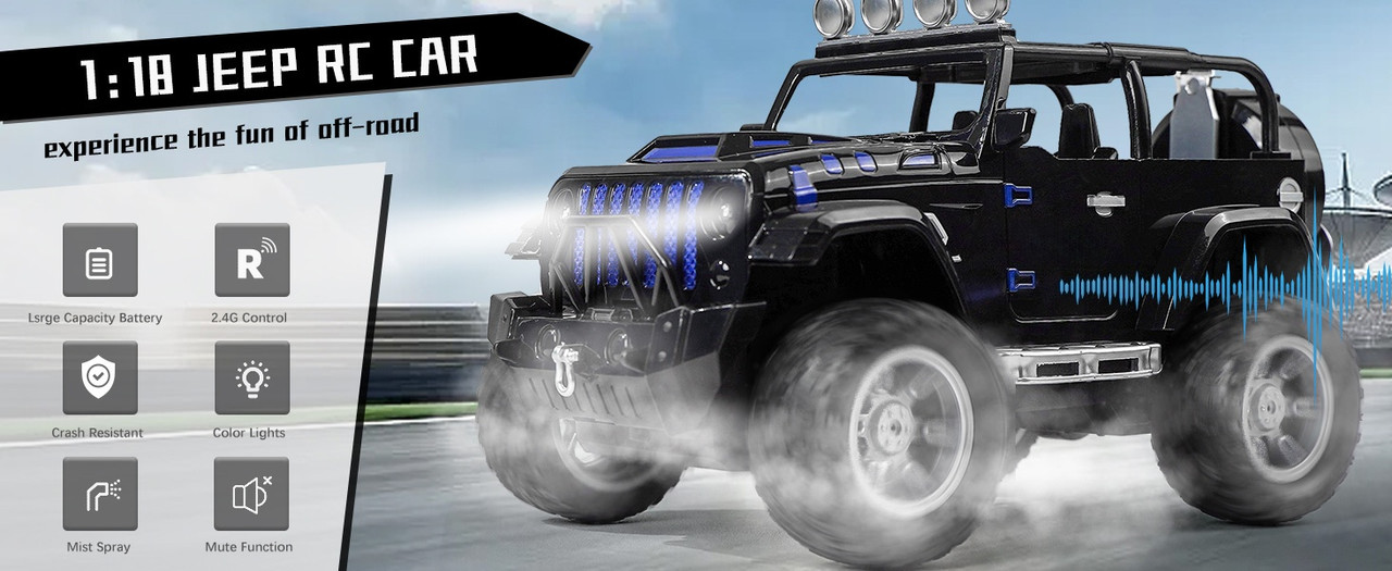 Ferngesteuertes Auto, 1:18 Hochgeschwindigkeits-RC-Truck 2,4G Offroad-Monstertruck-Spielzeug, mit LED-Lichtern und Wasserspritzfunktion, Geburtstagsgeschenk für Jungen und Mädchen