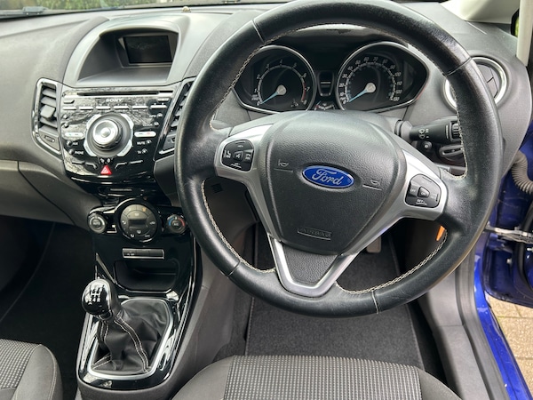 Now available is this well presented 2015 Ford Fiesta 1.0 Titanium 5dr in a deep metallic blue. Having only covered 59,530 miles along with a great service history, this car is more than ready to go. The 1.0 engine is very economical and offers low running costs ideal for daily commuting or as a first car for a new driver. With it being the titanium model, it comes with a very good level of specifications.