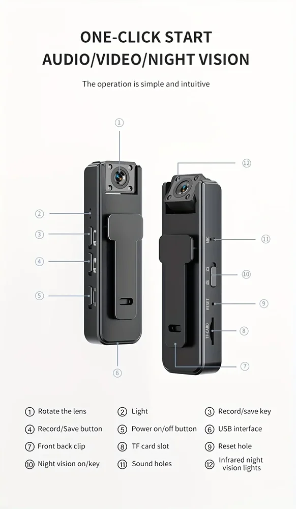 HD 1080P Body Mini Camera Portable Small Digital Video Recorder Police Body Cam Infrared Night Vision Miniature Camcorder