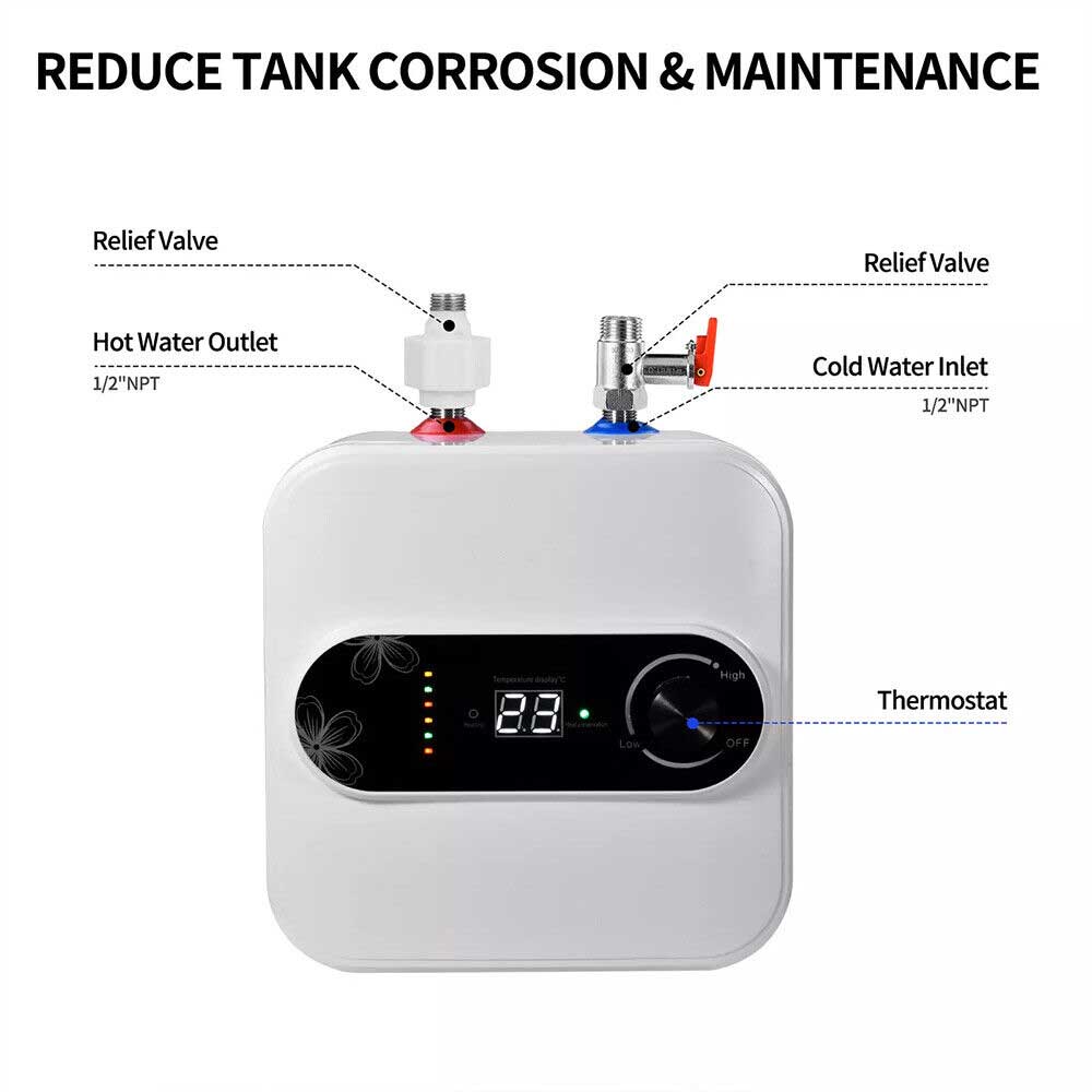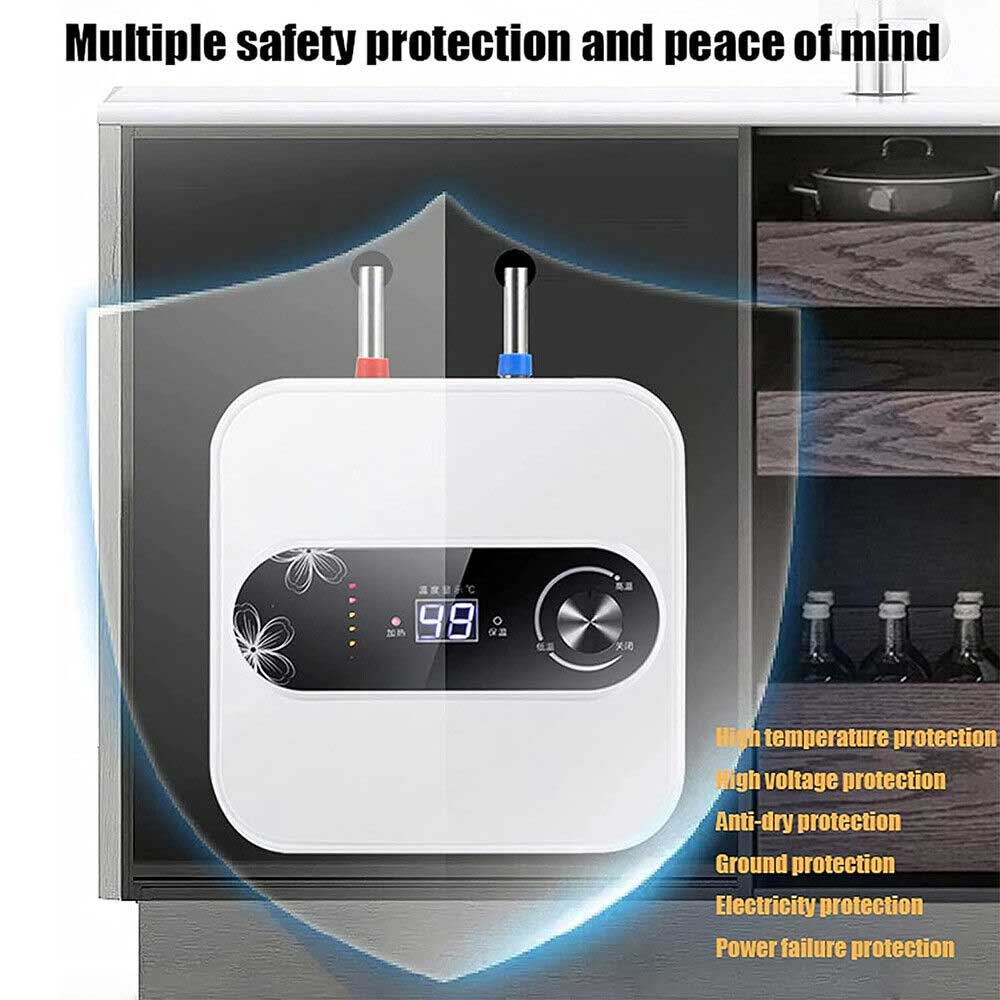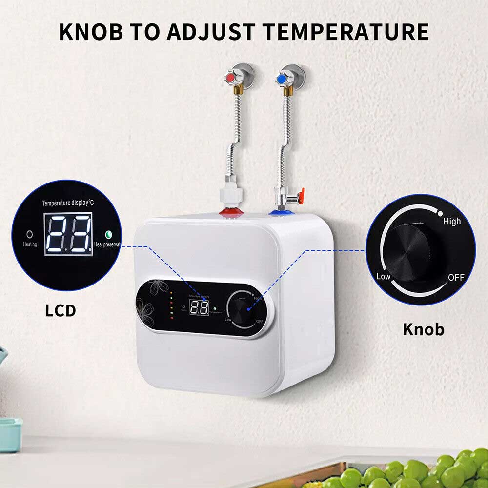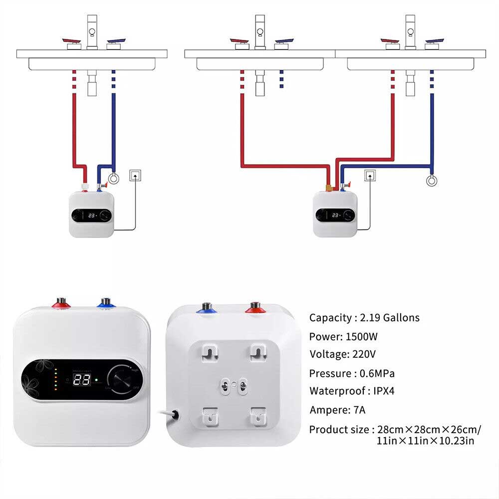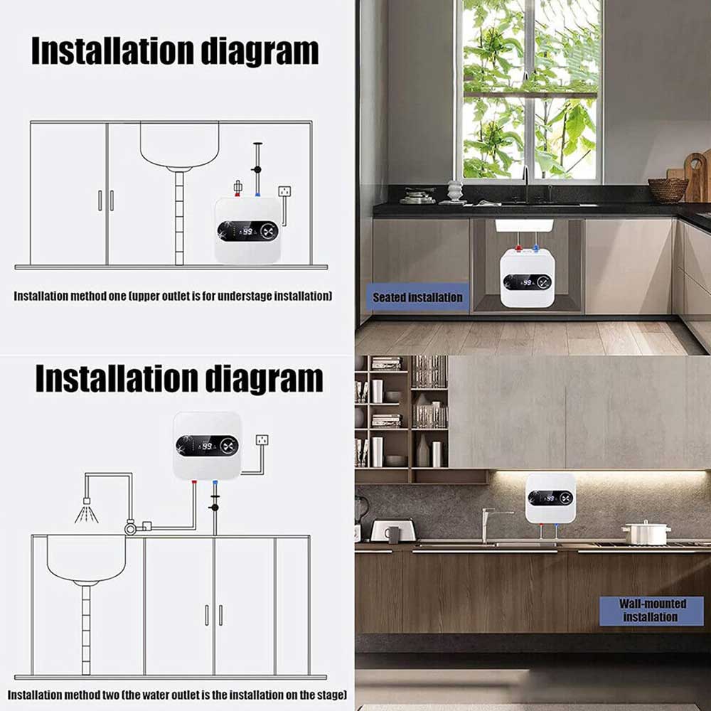 Suitable for small spaces The mini electric water heater is lightweight and compact in design and can be floor-standing, shelf-mounted or wall-mounted, making it perfect for any small space.This top-outlet electric water heater heats water quickly and has good heat retention. It provides you with a steady supply of warm water and automatically refills it, making your winter no longer cold and allowing you to feel the warmth of your home!