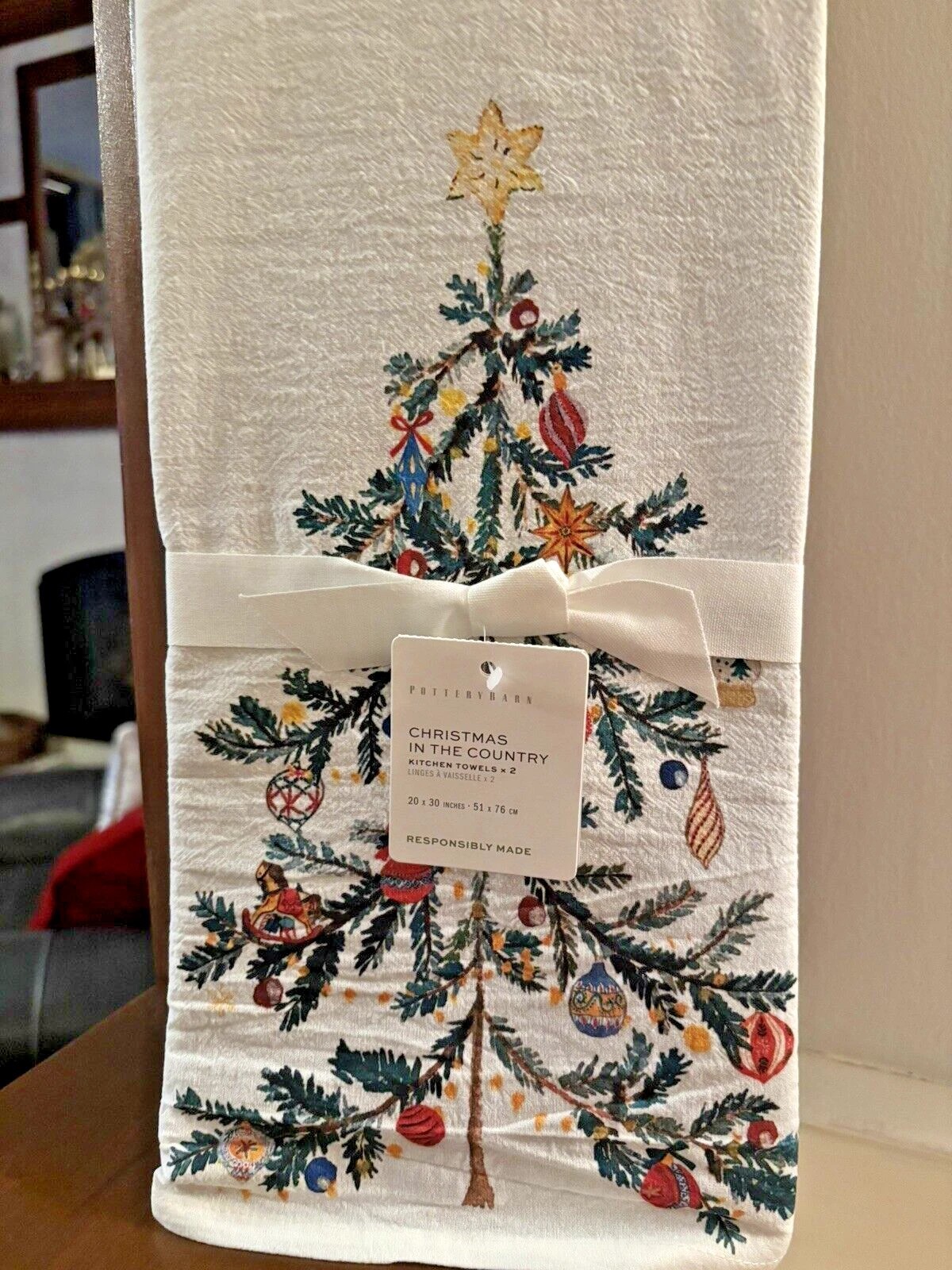 Set of 2 Holiday kitchen hand / tea towels. From pottery barn. New with tags in package.