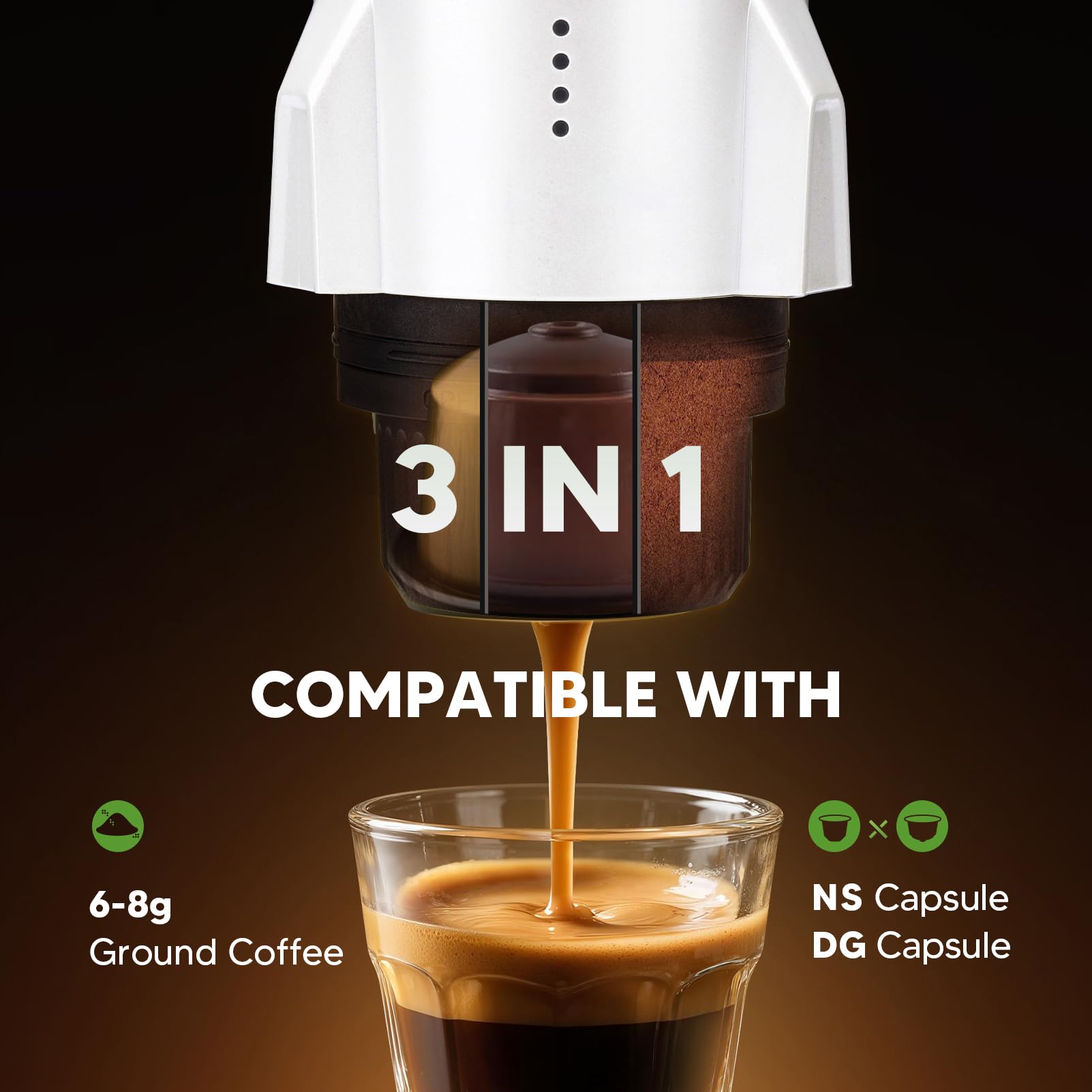 Multifunzione 3 in 1: macchina per caffè espresso portatile: supporta la preparazione di acqua fredda e acqua calda. Compatibile con caffè macinato e capsule caffè Original ALLUMINUM (N espressoL'orStarbucksLavazzaIlly e altri) e capsule DolceGusto. È un regalo perfetto per familiari e amici amanti del caffè.