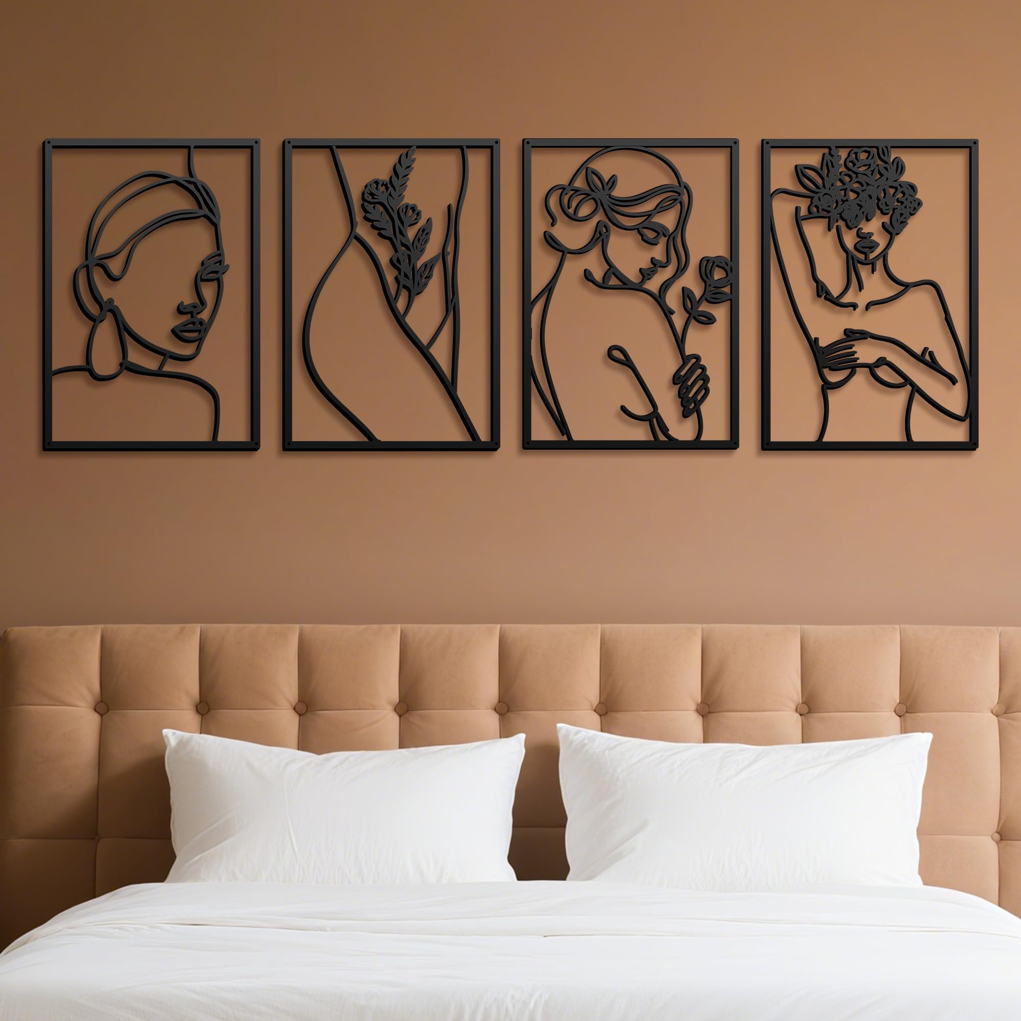 4 Pack Black Wall Art Décor for living room, Metal Minimalist Abstract Wall Décor bathroom, Single Line Woman's Body Shape Modern Wall Art, Size 17 X 11.8 inches