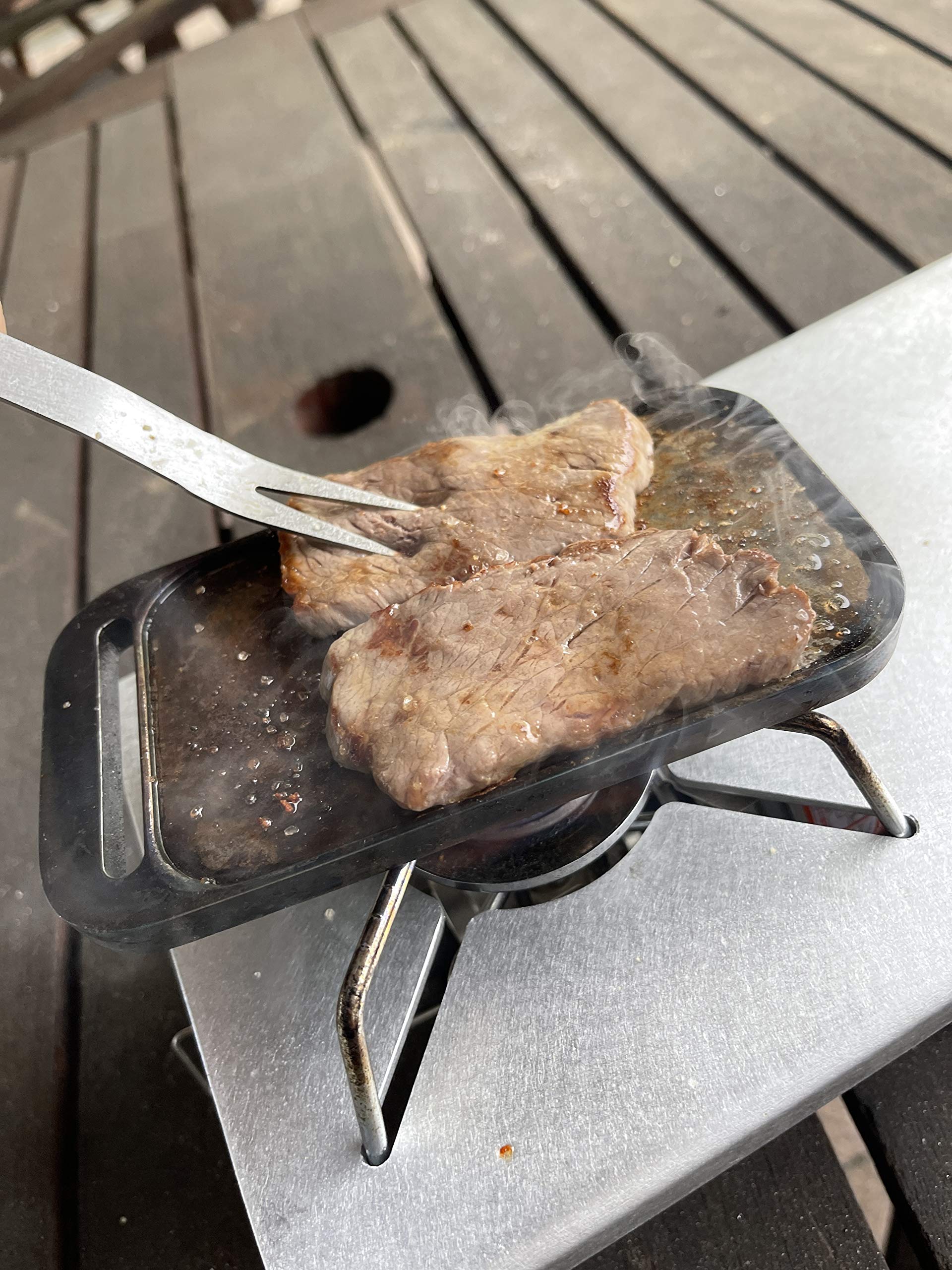 I want to eat delicious meat while baking delicious meat at the camp! You can stab meat and your favorite ingredients and eat it as it is. There are various ways to use the ingredients and press them. I feel inconvenient if I use it once. It is a convenient camping gear when it is in a solo camp. Useful for cooking with a single burner. ■ Because it is made of stainless steel, you can use it repeatedly and use it. It is a mini size that can be stored in Mestin. ■ [Made in Japan with peace of mind] We take responsibility for production to shipping at our own factory in Japan. ■ Size: 143 x 13mm Weight 18g Material: Domestic SUS304 ■ For environmental protection, please understand and cooperate with simple packaging. ■ I want to eat delicious meat while baking! You can stab meat and other ingredients and eat it as it is. Because it is made of stainless steel, you can use it repeatedly and use it. It is a size that can be stored in Mestin.