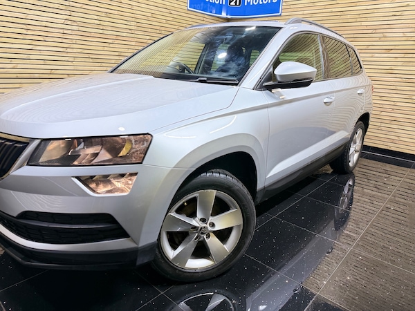 This Skoda Karoq 1.6 diesel automatic has 2 previous owners and comes with 7 Skoda services - last serviced at 97k , Long Mot - no advisory's , 2 keys Very nice spec including Bluetooth Connectivity , Cruise Control , Parking Sensors , DAB radio , Factory Tinted Windows , 17'' alloys Junction 21 Motors Ltd is a family-run business with over 15 years of experience in the motor trade. We are an AA Approved Garage, conveniently located at Rolstone Farm, just half a mile from M5 Junction 21. FCA Registered - working with a wide panel of trusted finance providers Part Exchange Welcome All Viewings by Appointment Only (fees may apply) Opening Hours: •Monday - Friday: 9:30am - 6:00pm •Saturday: 10:00am - 5:00pm •Sunday: Hours vary (please call to confirm) Call us on Visit our website for directions and to browse our latest stock. Features Include: , 12v power socket in boot, bolero radio, dab digital radio and bluetooth, smartlink plus, 17in alloy wheels - ratikon, anti-theft locking wheel bolts, black roof rails, body coloured door mirrors and door handles, electric front and rear windows with child proof lock, electrically adjustable - heated - folding - auto-dimming door mirrors, heated rear windscreen, light assistant, privacy glass, tyre repair kit, 2 reading lights front - for driver and passenger, 3 spoke leather multifunction steering wheel, 4 foldable roof handles with clothes hooks in rear, aero front windscreen wipers with intermitted function, air conditioning - climate control dual zone, boot package - 2 folding hooks and nets, bottle holders in door panel in the front - 1.5 litre bottle - driver and passenger door panels, cargo element in luggage compartment, chrome framed air vents, chrome interior door handles, electric window control buttons in black, foldable hooks in the boot, folding tables on rear of front seats, front centre armrest with storage compartment - rear air vents and 12v socket, glasses storage compartment, glovebox - illuminated and cooled, height adjustable driver and front passenger seat, ice scraper, illumination of luggage compartment, light and rain sensor with auto-dimming rear view mirror, manual lumbar support for front seats, net programme in boot, non smokers package, pen holder, pollen filter, reading lights - rear, rear boot cover, safety reflectors on front doors, safety vest holder, seats - split folding rear - 60-40, storage box in upper central dashboard - closed,