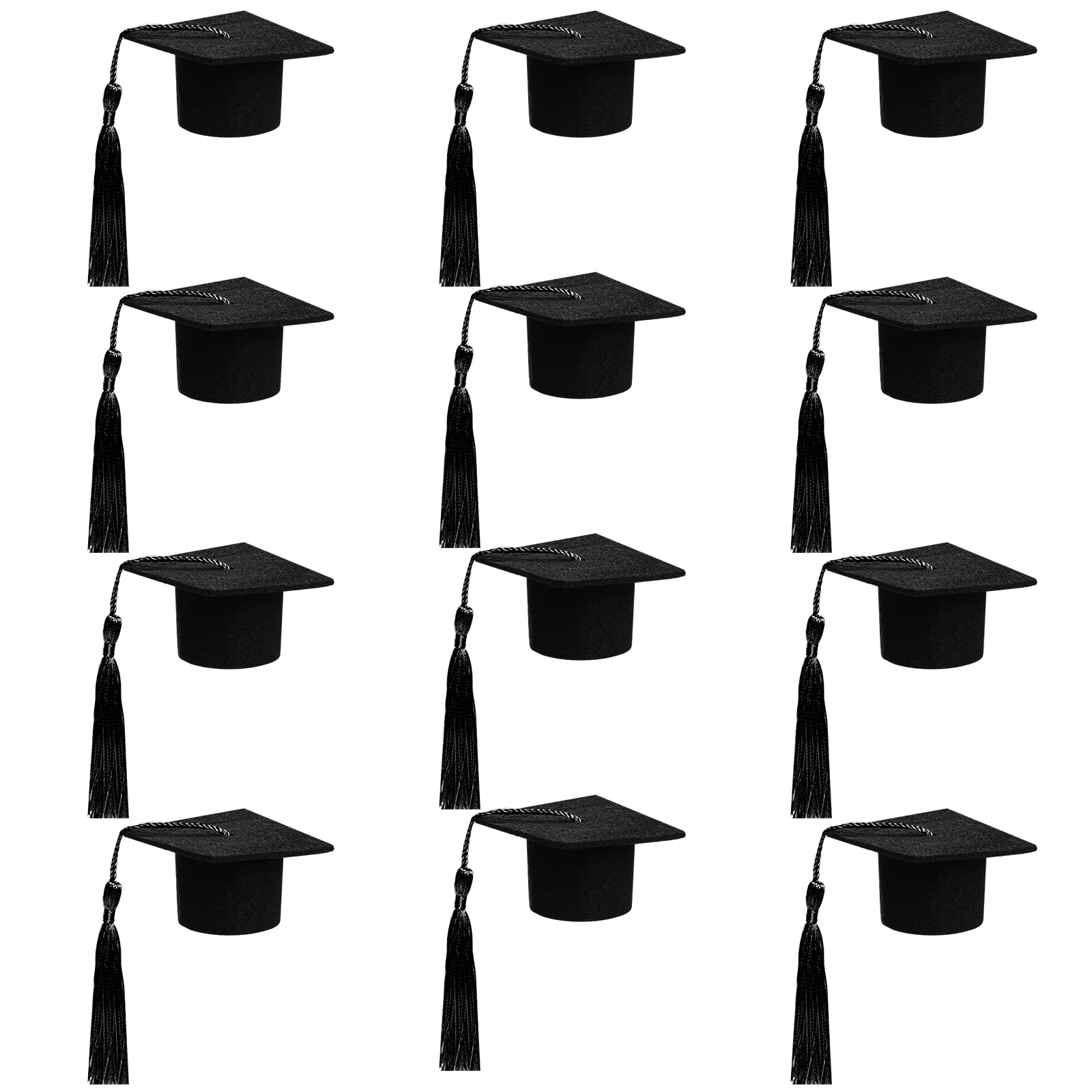 - 12PCS MINI GRADUATION CAPS FOR CRAFTS YOU WILL GET:You will get 12pcs bottle toppers with tassels for wine topper in total, they come with black color. Mini black felt graduation hat has suitable size and sufficient quantity for you to use for graduation party.