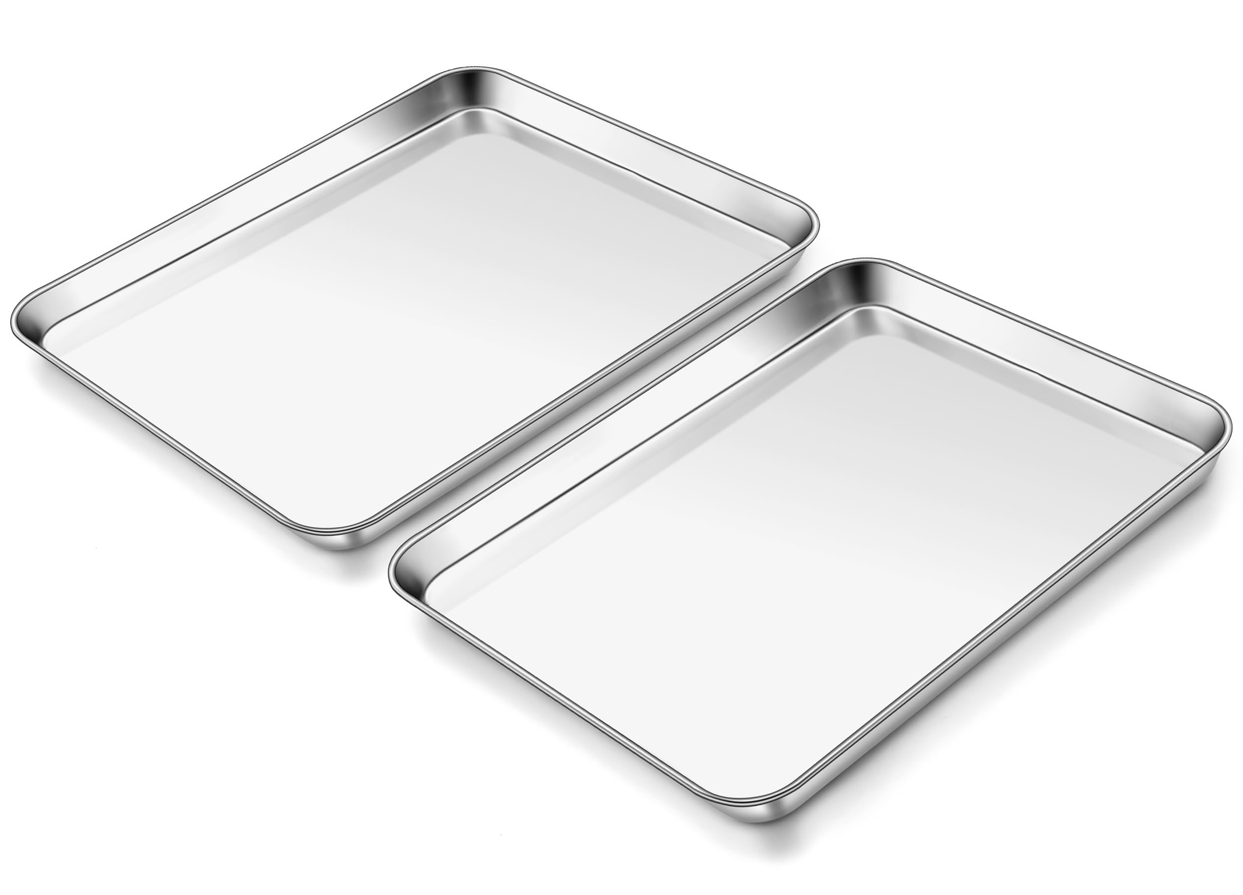 Versatile baking, 12.4 x 9.7 x 1 inch half sheet pans fit most regular toaster ovens, medium flat baking cookie tray great for sweet or savory baking, perfect for cooking delicious dinner meals, roasting chicken, broiling steak, baking cookies, sheet cake, pizza and more, also can be used as serving tray