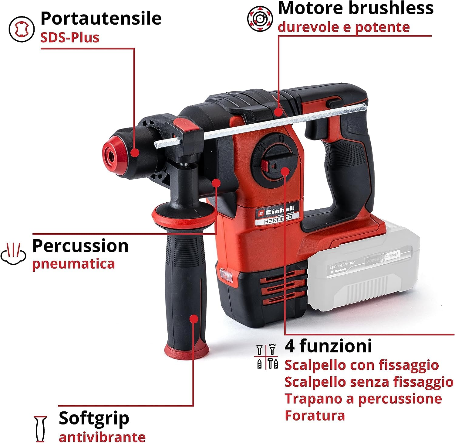 Einhell Tassellatore A Batteria HEROCCO 18/20 Power X Change (18 V 2,2 J Motore