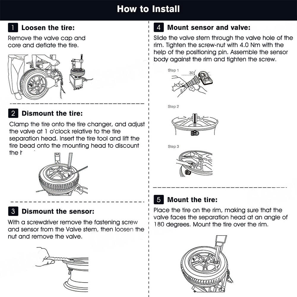 - Installation and relearning of TPMS is recommended to be performed by trained professionals.