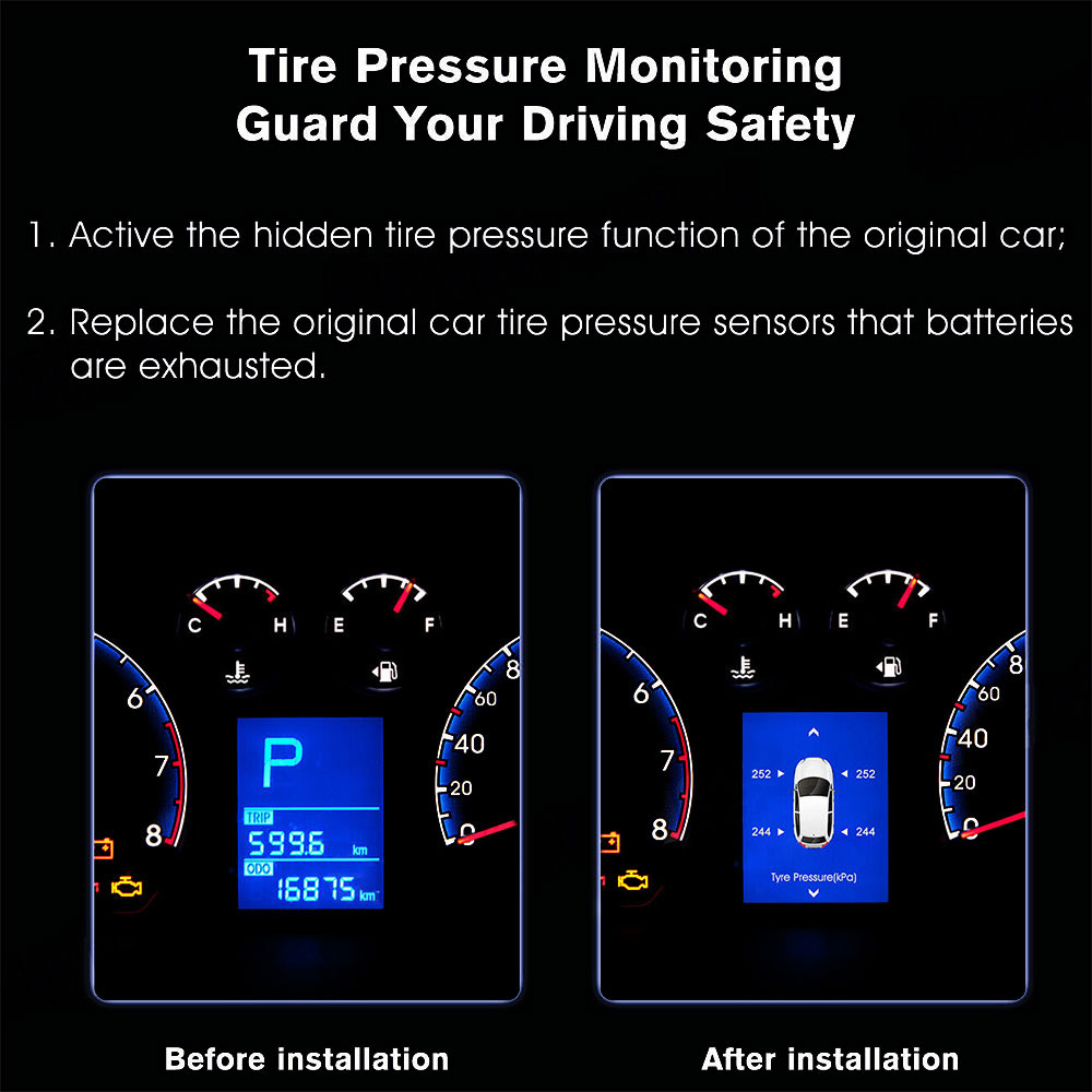 1. Monitor the tire pressure at real time, enhance vehicle safety with durability and reliability.