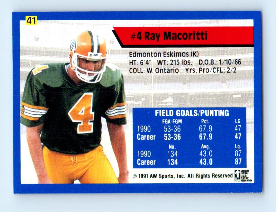 | 1991 All World CFL Ray Macoritti Edmonton Eskimos #41 |