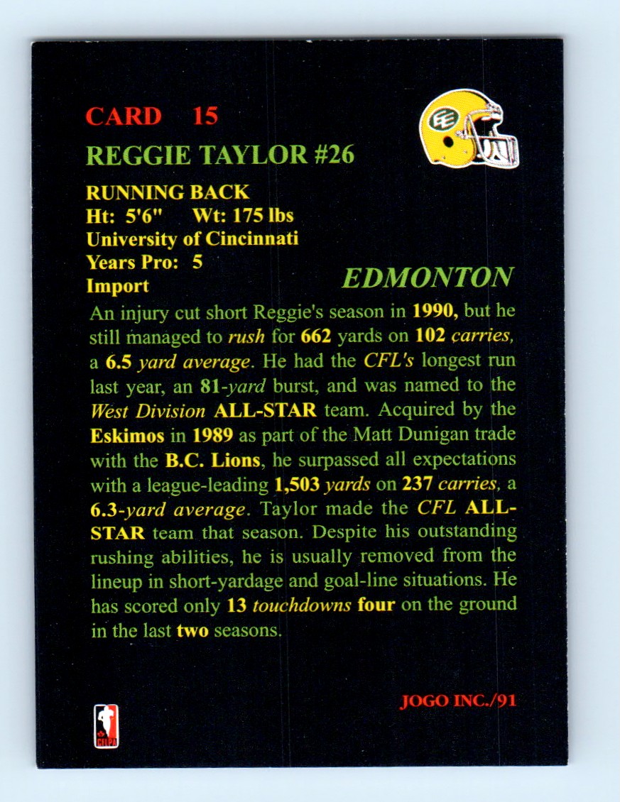 | 1991 JOGO Reggie Taylor Edmonton Eskimos #15 |