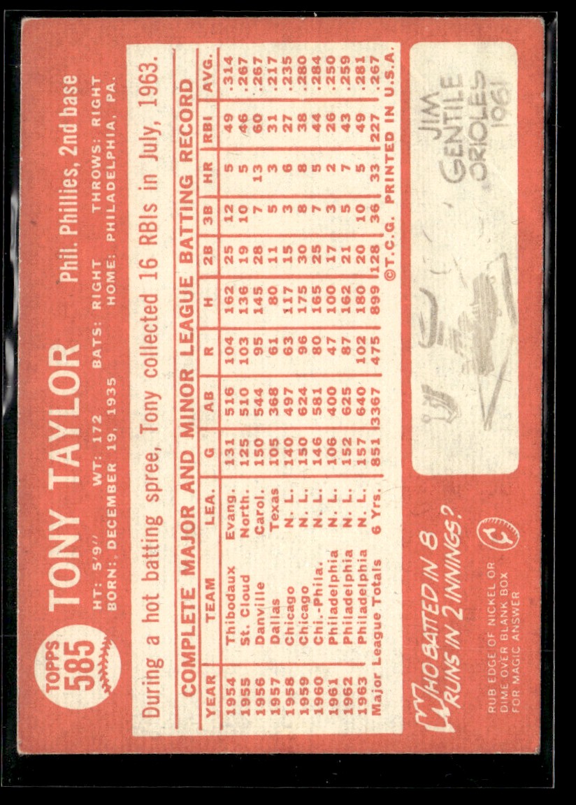 | 1964 Topps Tony Taylor VG/EX to EX set break #585 |